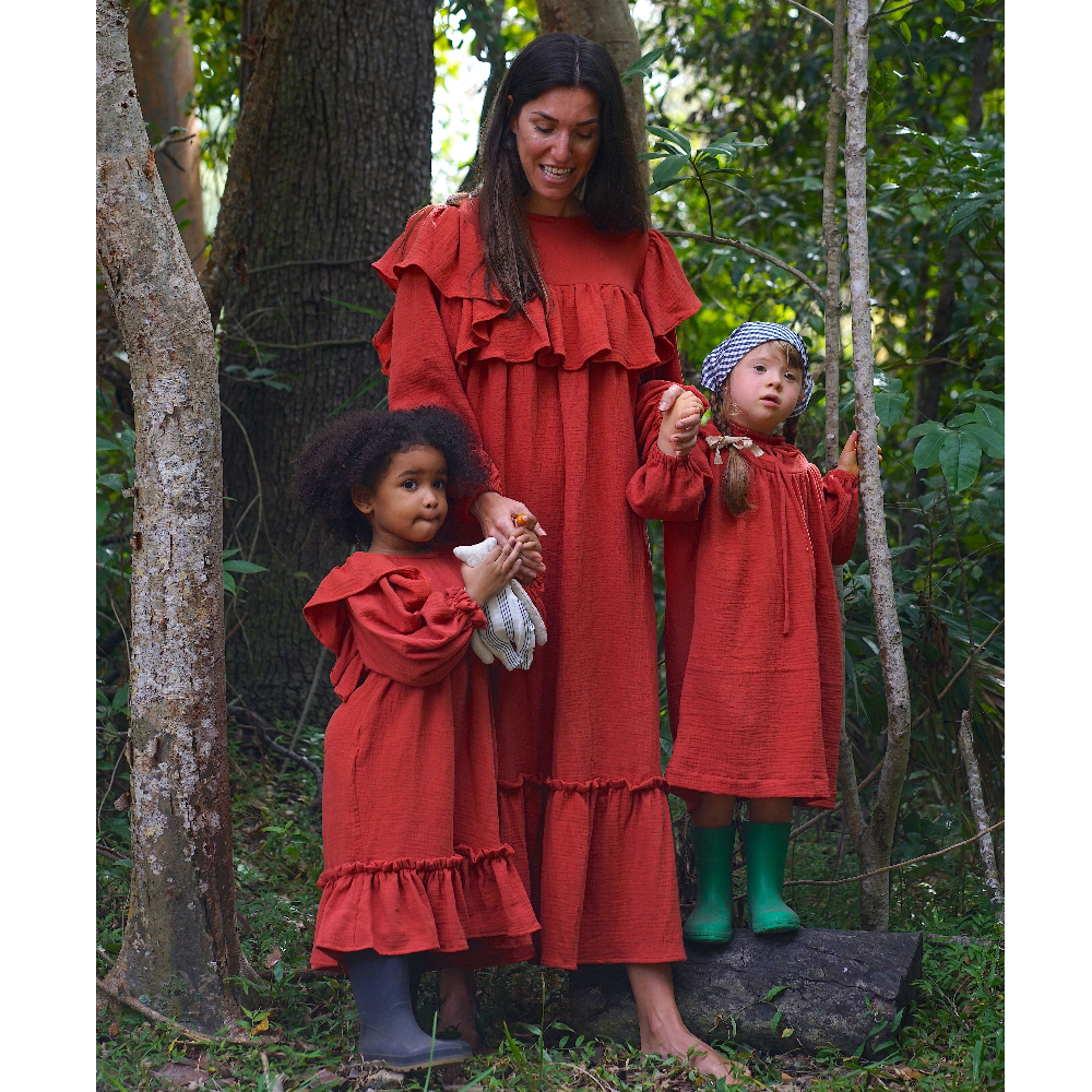 Andrea Ruffle Dress_Gauze Brick_na pa ani