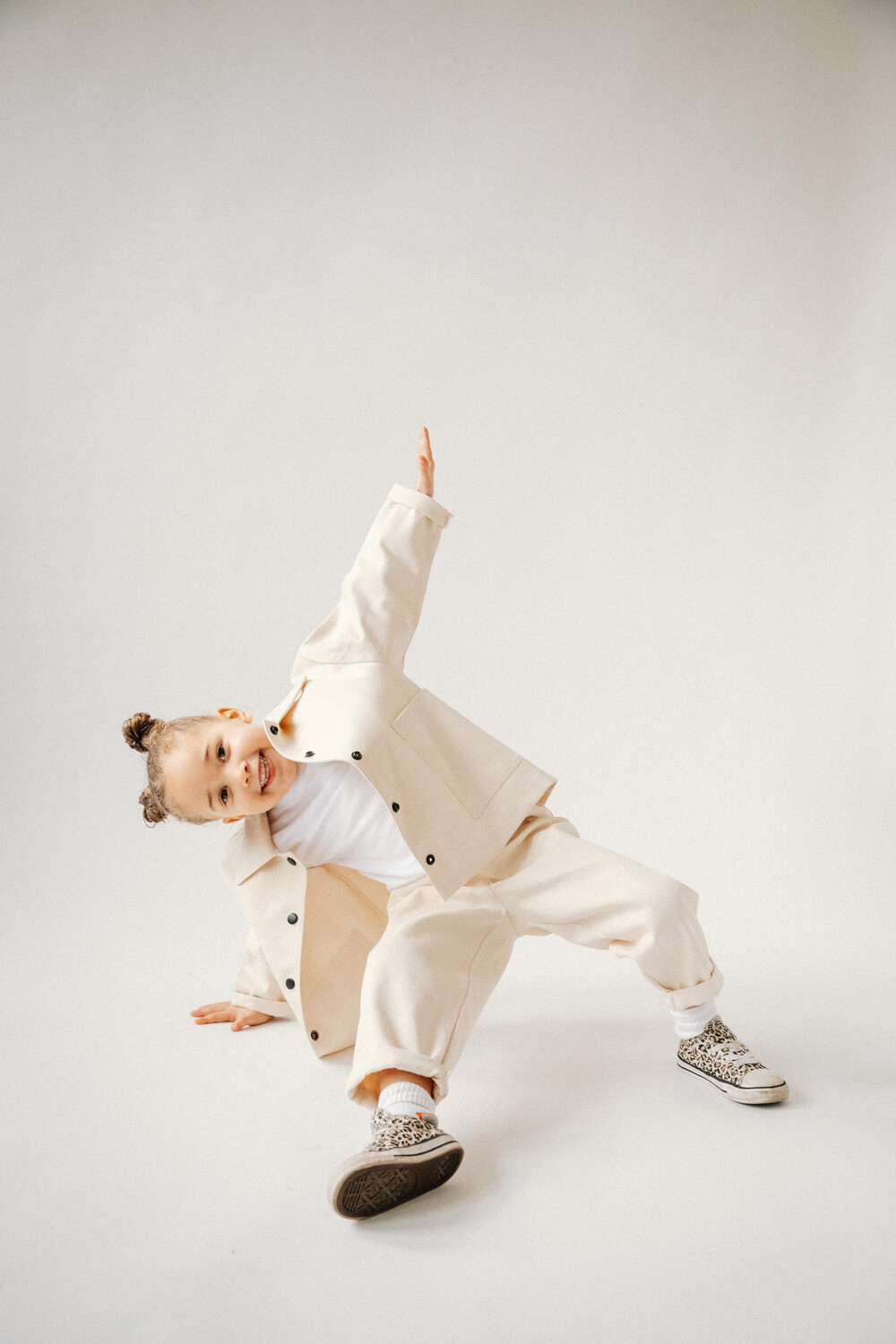 A classic staple design for kids. Our unisex denim jacket in ecru is a classic chore style jacket cut from 100% organic cotton denim from Italian mill Candiani Denim. The denim is made using clean technologies to save water, energy and replace harmful chemicals.