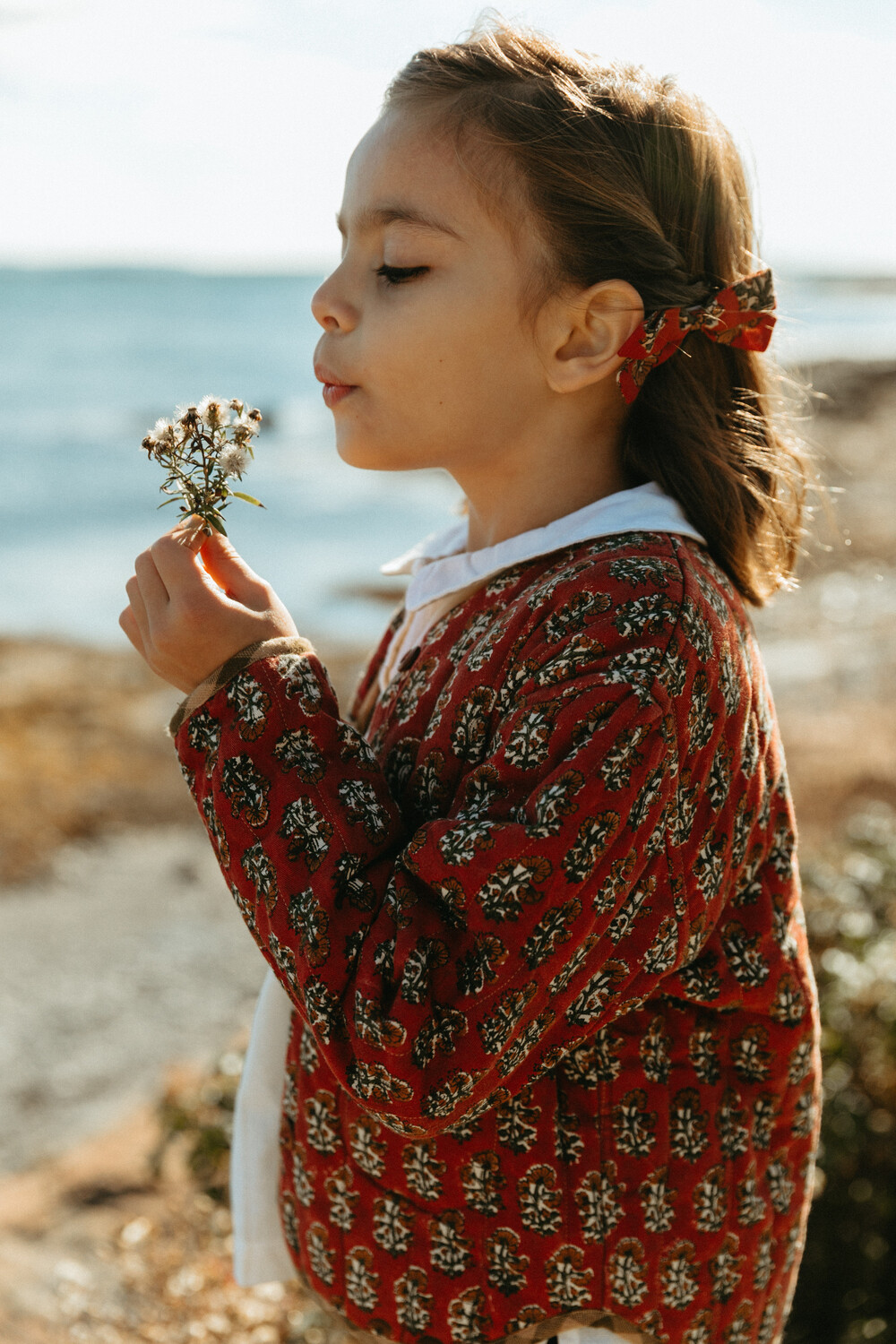 QUILTED JACKET_RED BLOCK PRINT_Lali