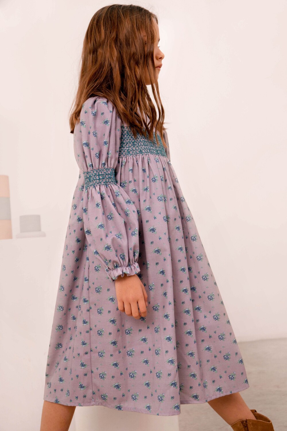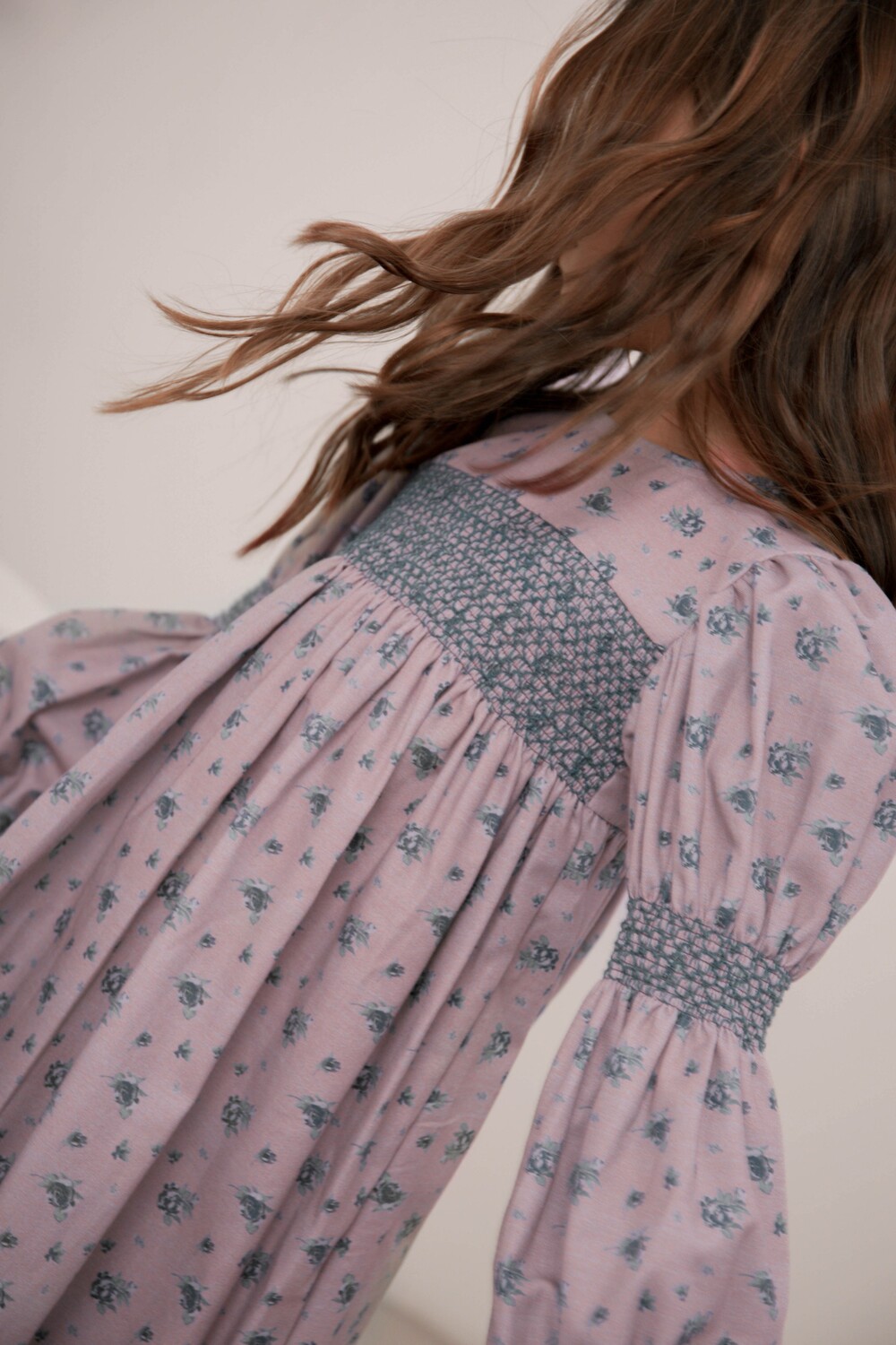 SMOCKED VIYELLA ROSE DRESS_MAUVE_MIPOUNET