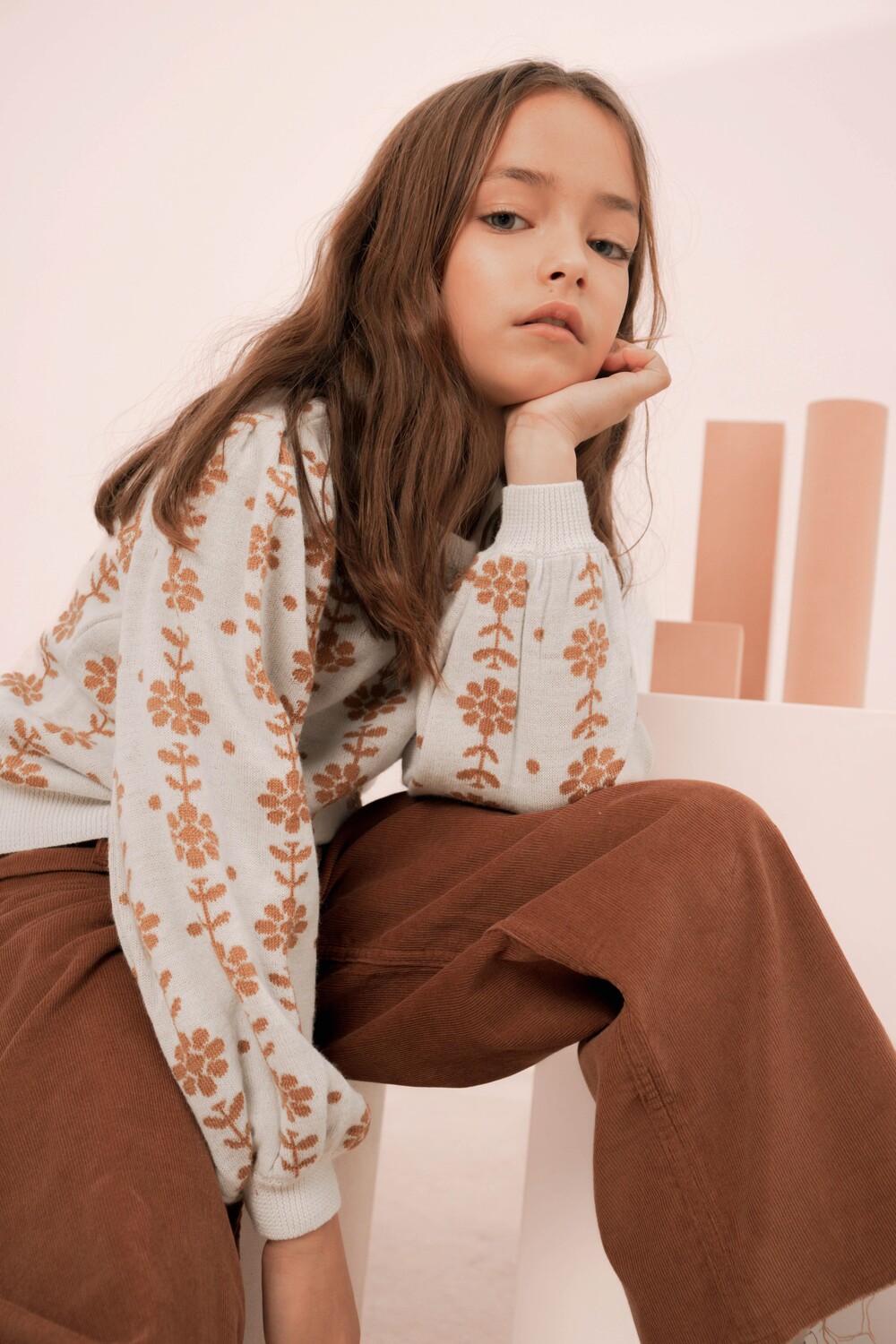 WOOL BRAIDED FLOWER SWEATER_CARAMEL_MIPOUNET