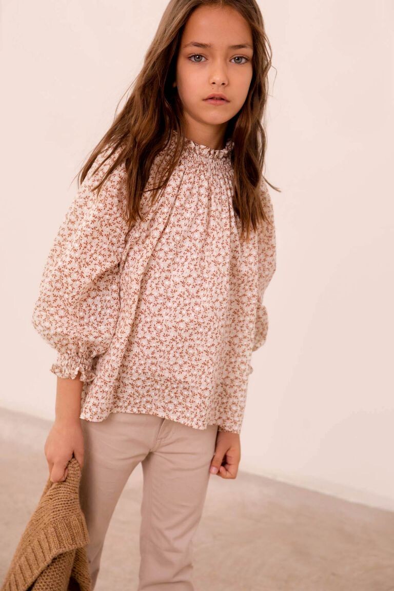 FRILLED GAUZE BLOUSE_BROWN_MIPOUNET