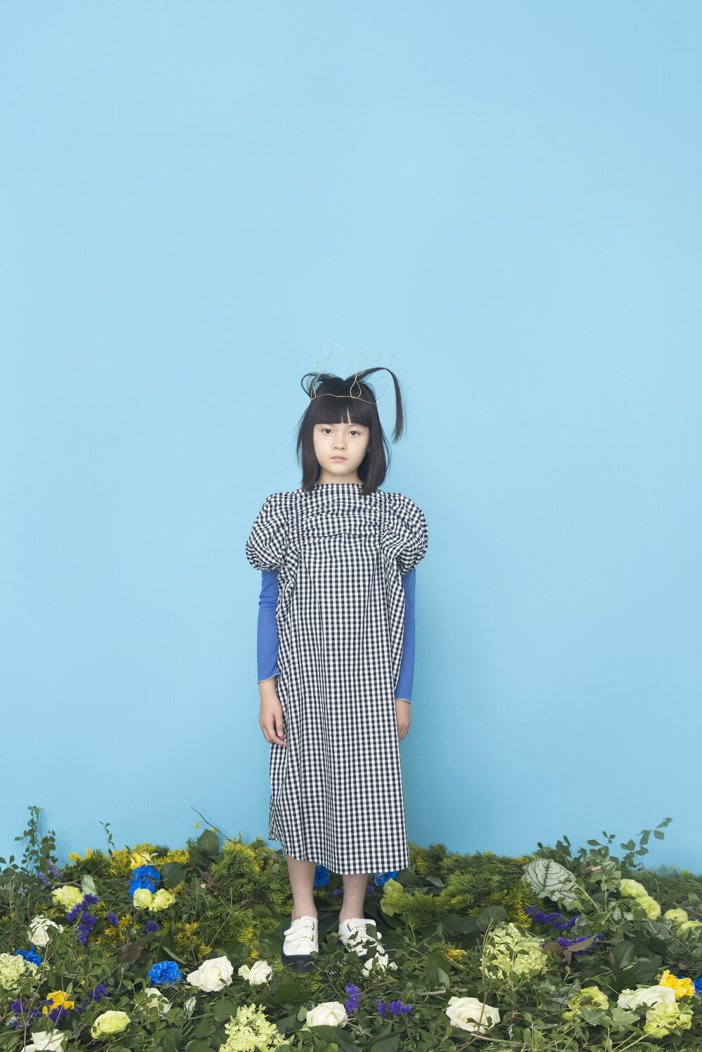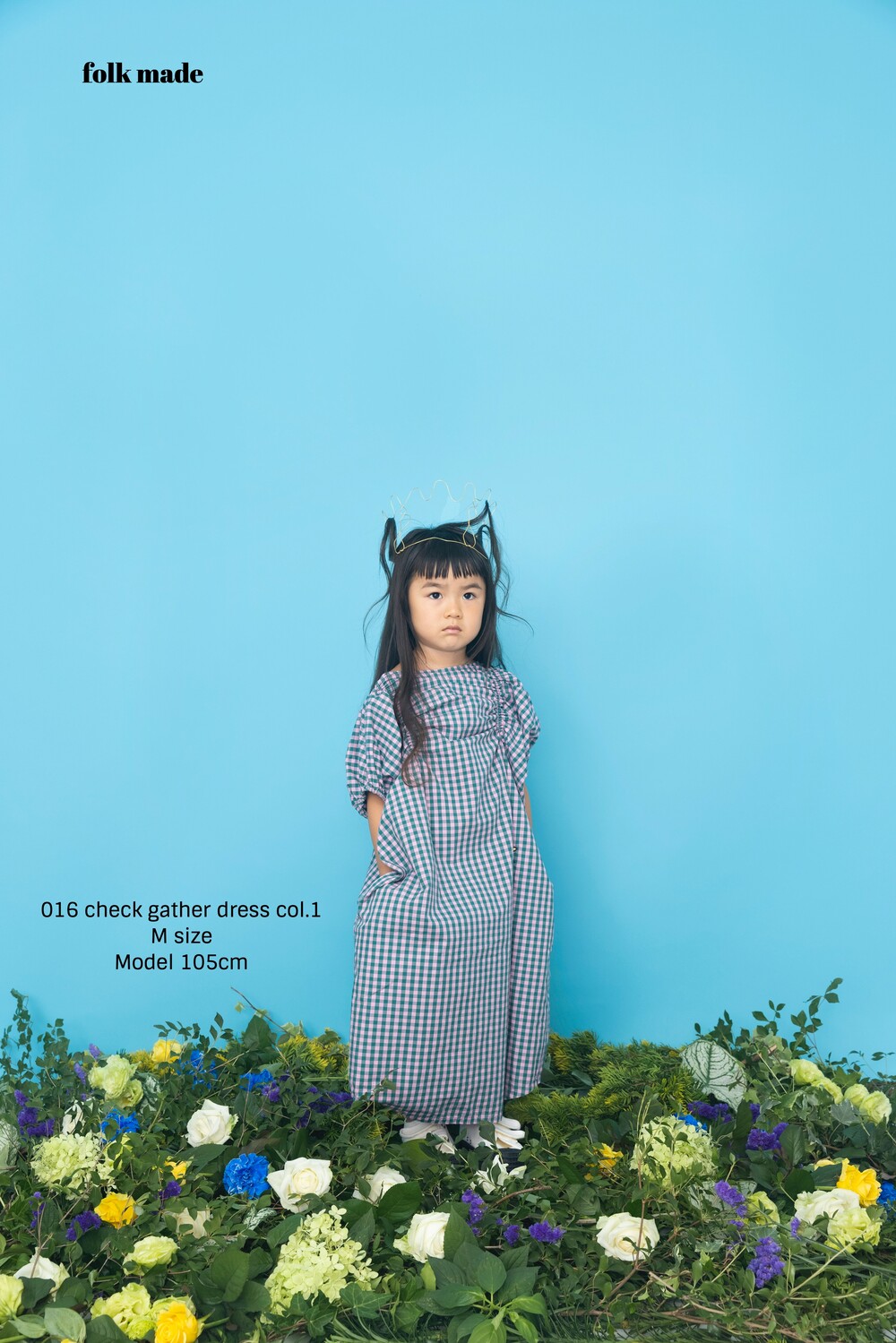 Check gather dress _Pink×green_folkmade