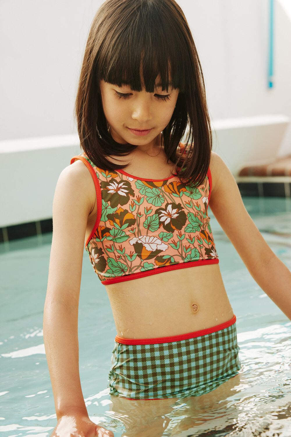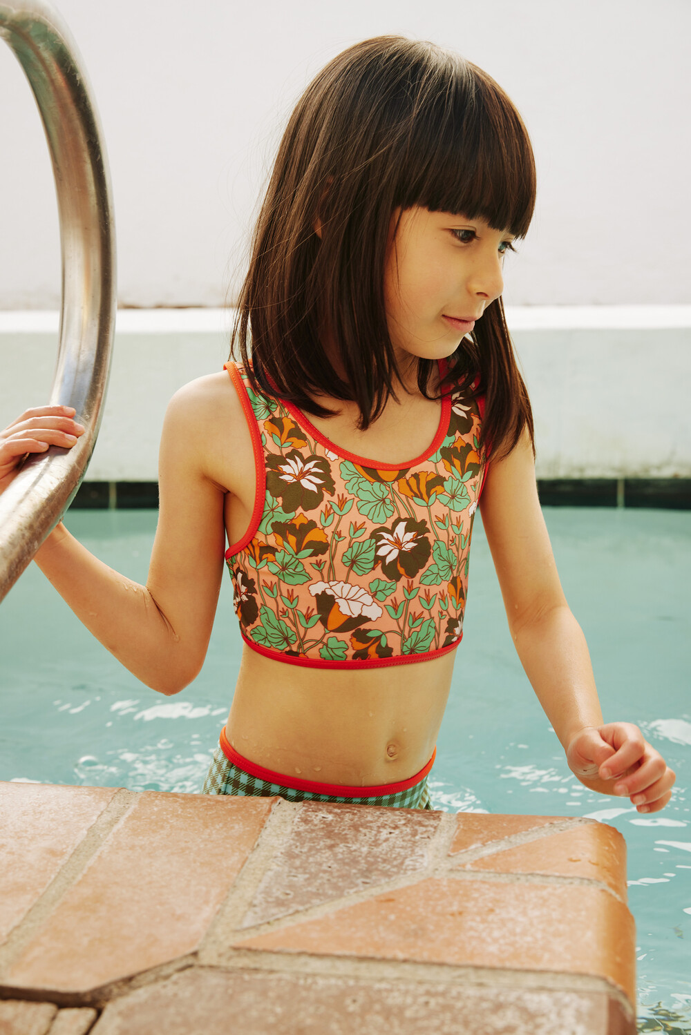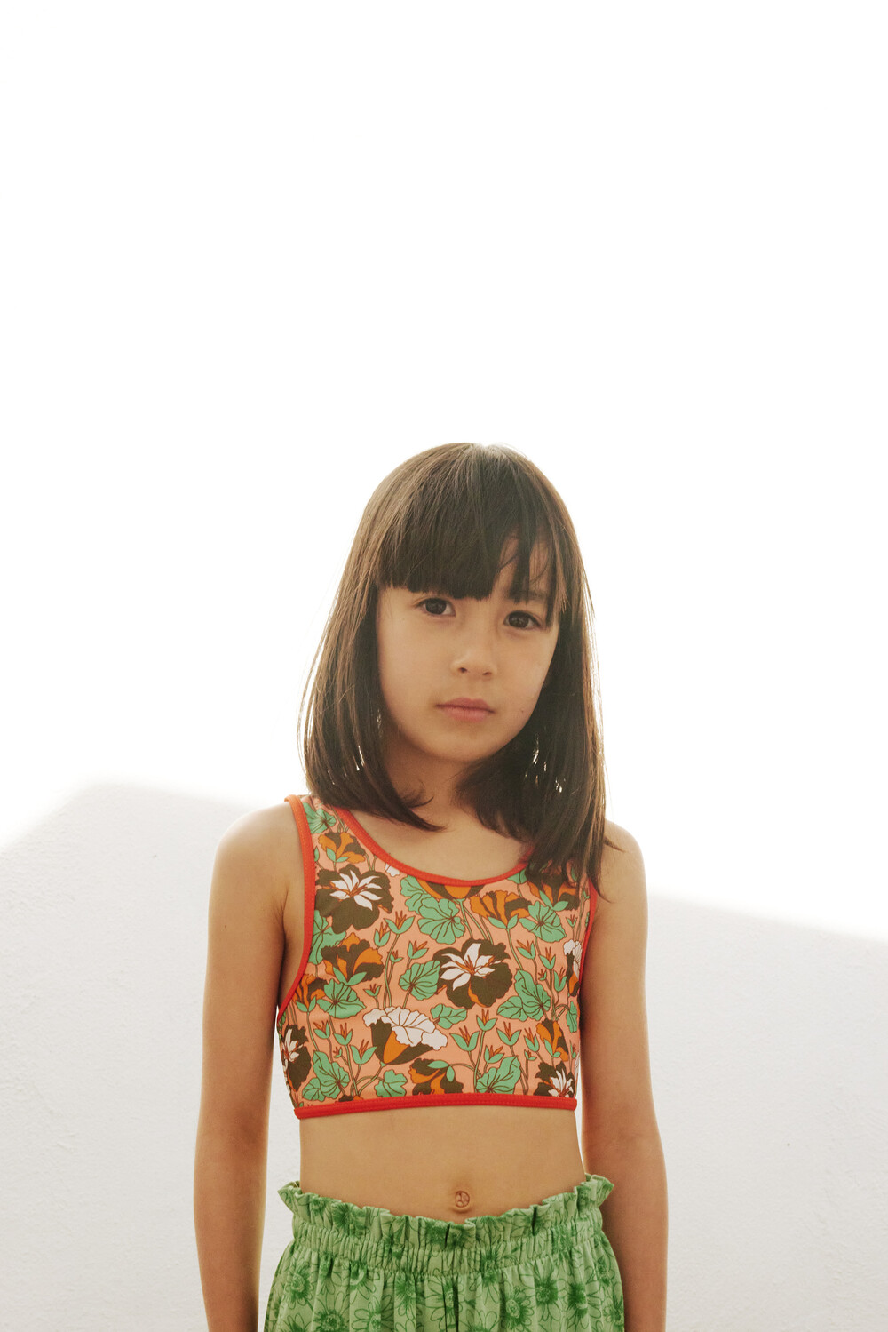 Swim Tie Top_Peach Pink Trumpet Flower_Misha & Puff