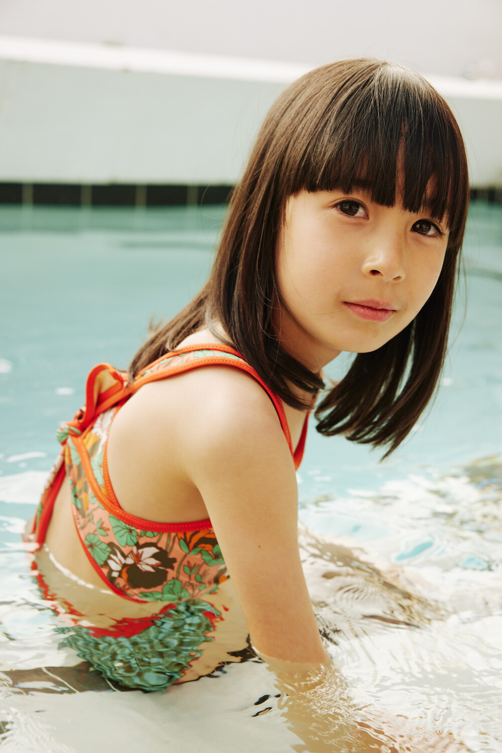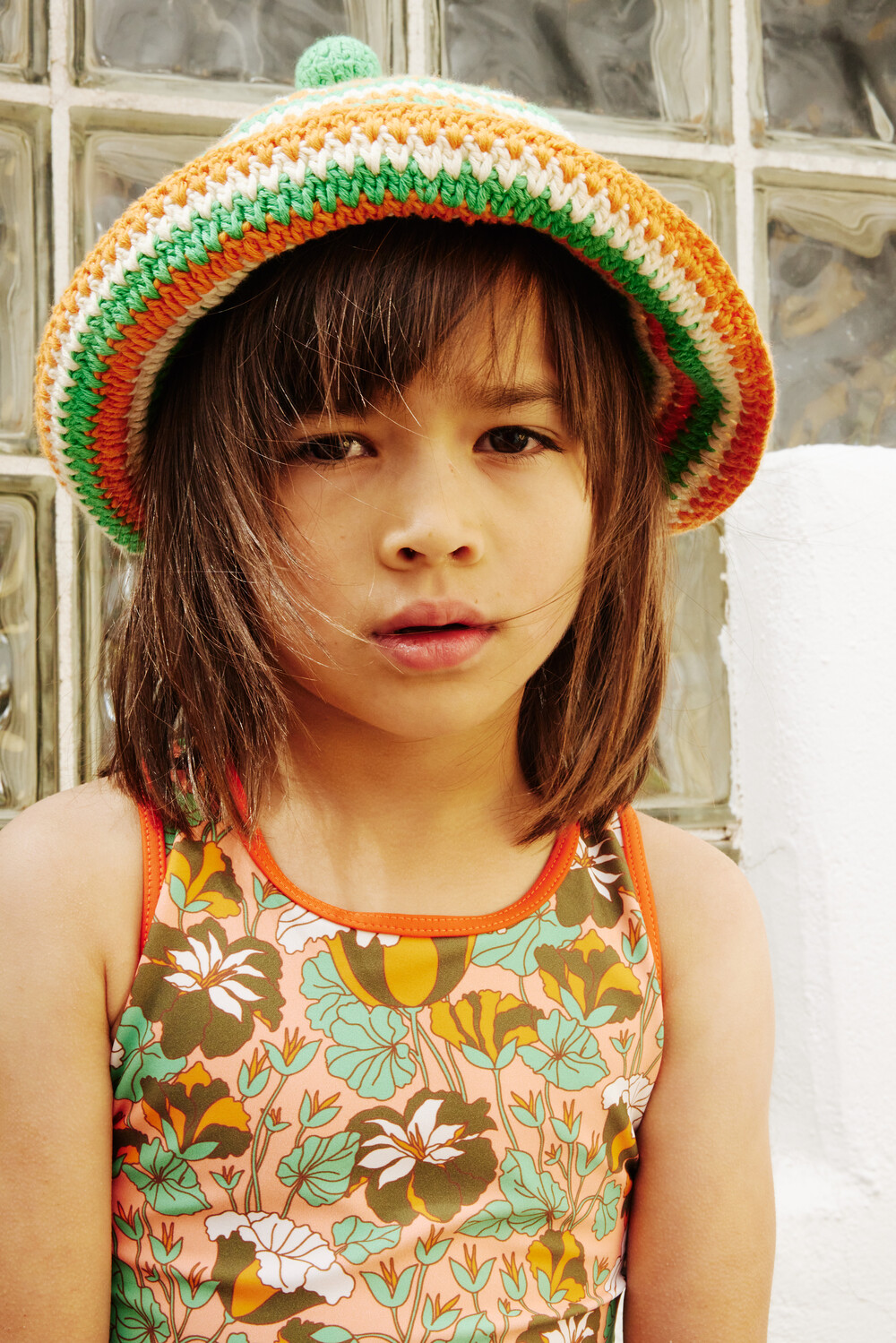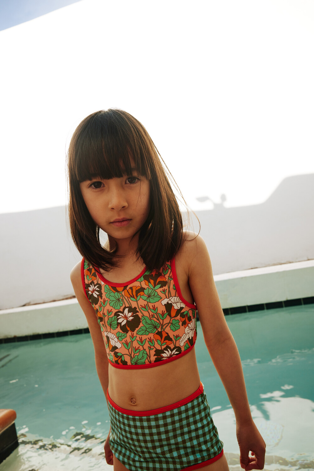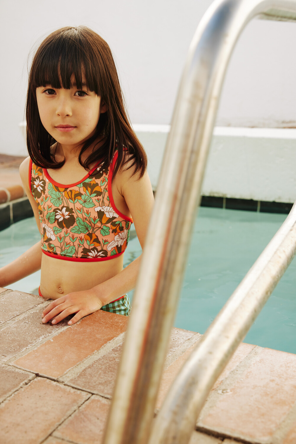 Swim Tie Top_Peach Pink Trumpet Flower_Misha & Puff