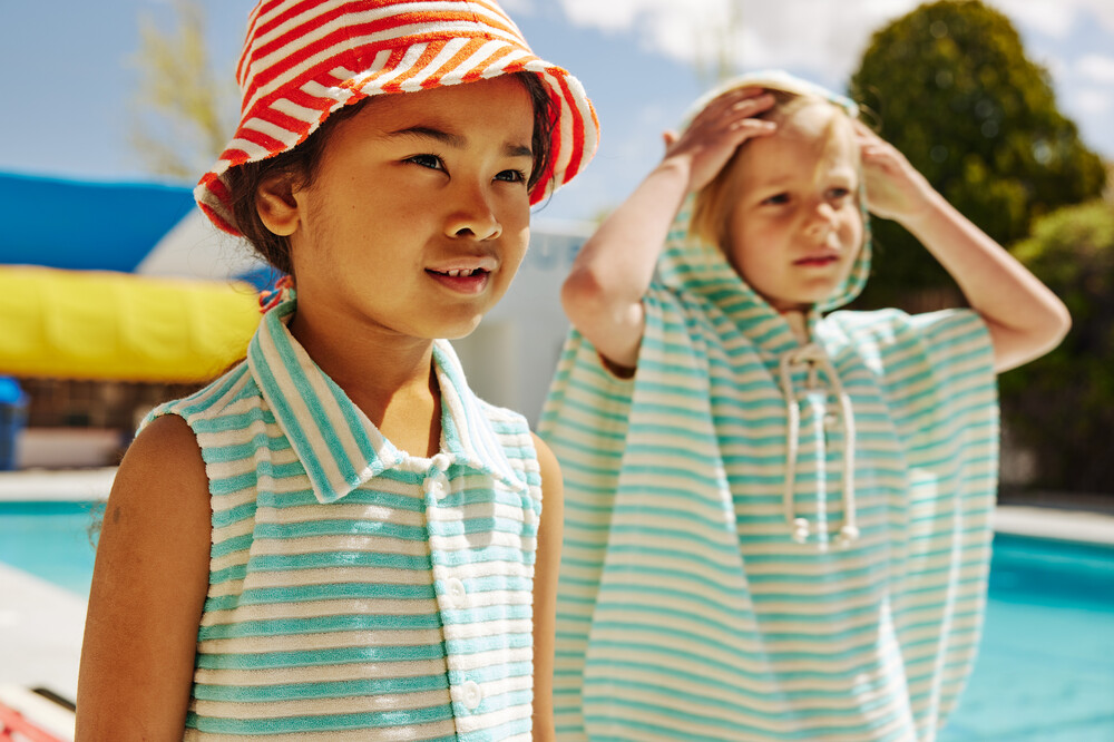 Terry Beach Poncho_Aqua Sky Stripe_Misha & Puff