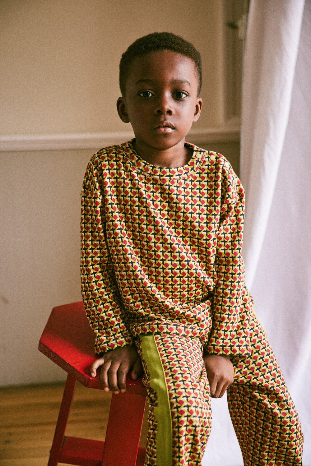 Long Sleeve Boxy Top-Sprig Berry Lattice-Misha & Puff