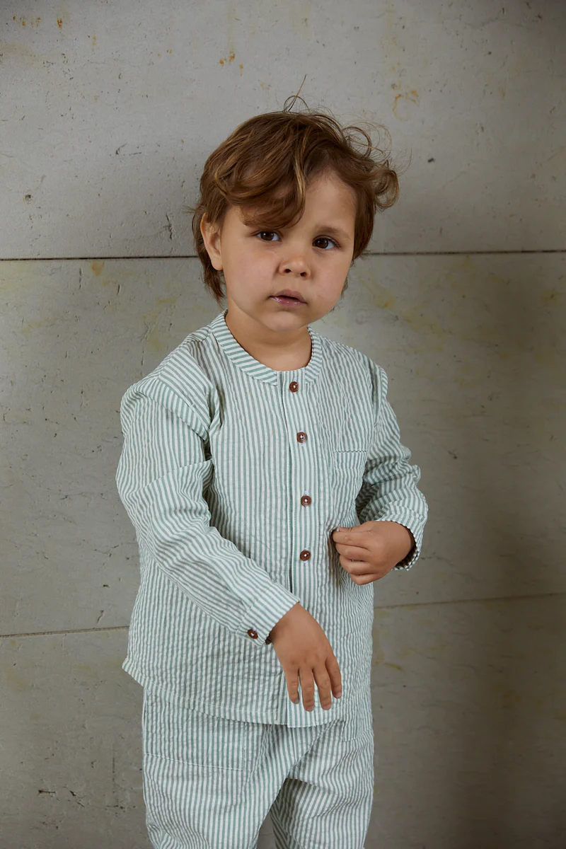 SEERSUCKER_LONG SLEEVE SHIRT_GREEN STRIPE_Copenhagen Colors_3Y