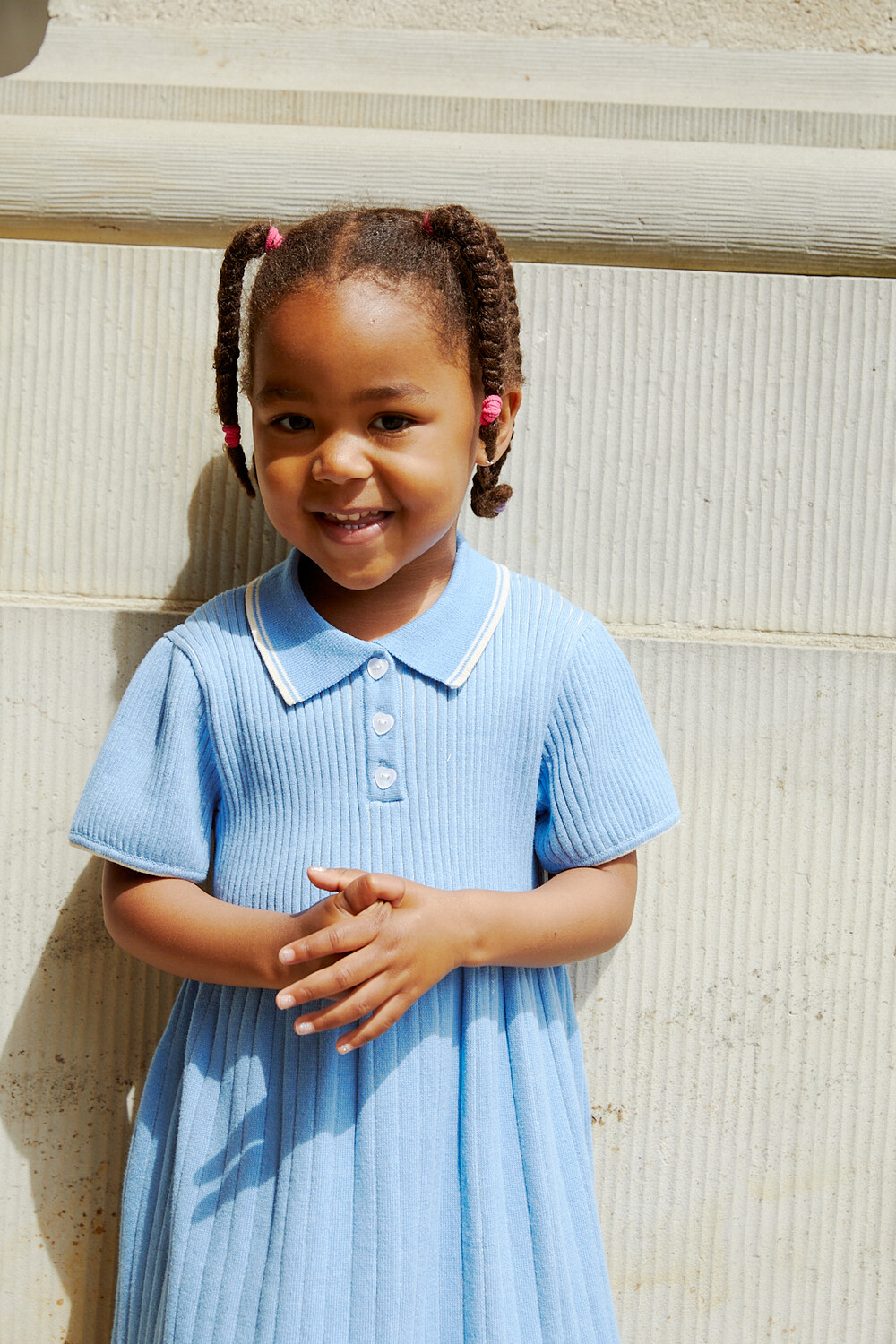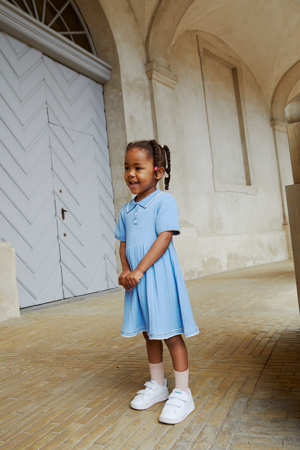 RIB POLO KNITTED DRESS_SKY BLUE/CREAM COMB_Copenhagen Colors