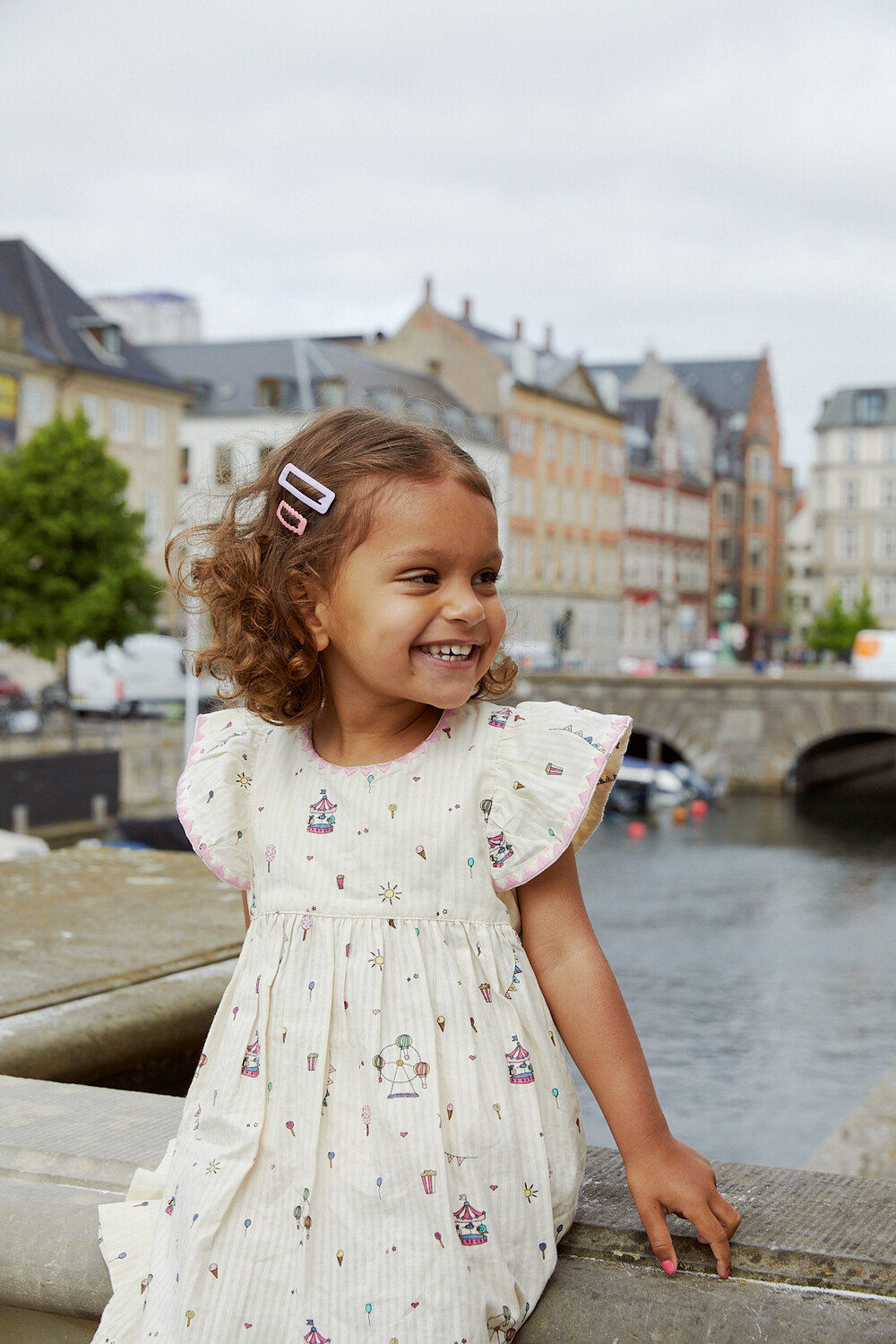 PRINTED DRESS W. RUFFLE SLEEVES_CREAM TIVOLI PRINT_Copenhagen Colors