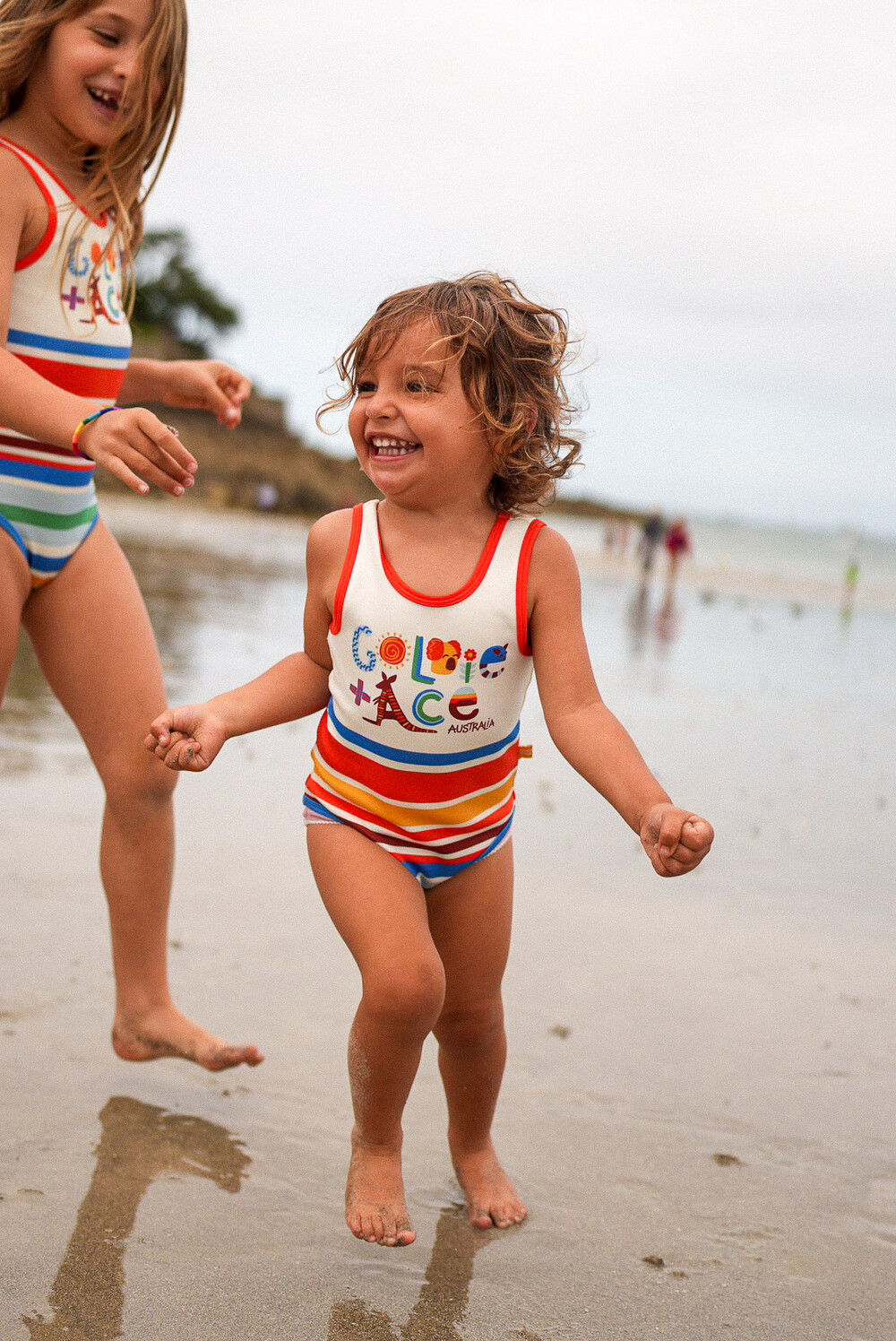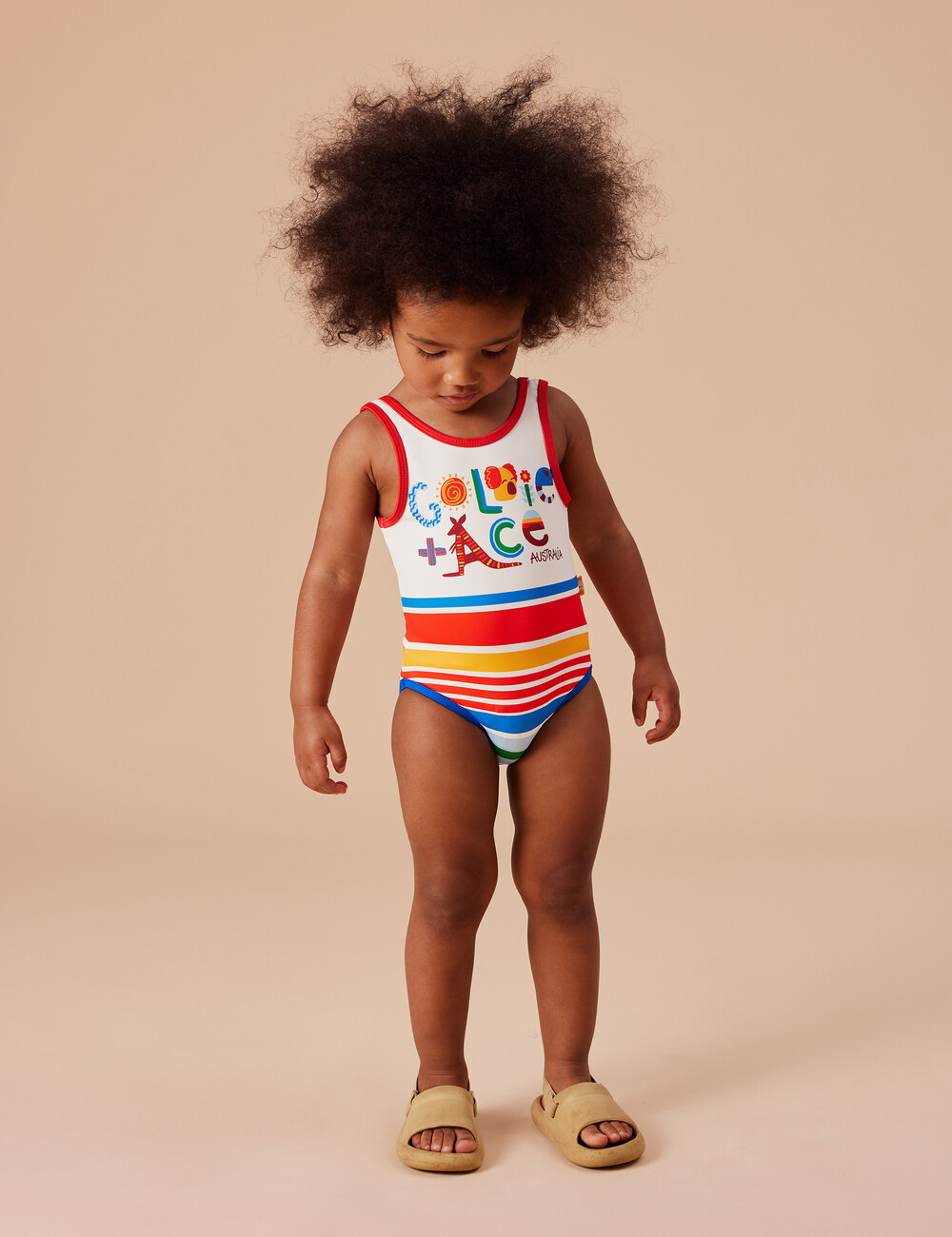 LAND DOWN UNDER STRIPE SCOOP BACK BATHERS_Goldie+Ace