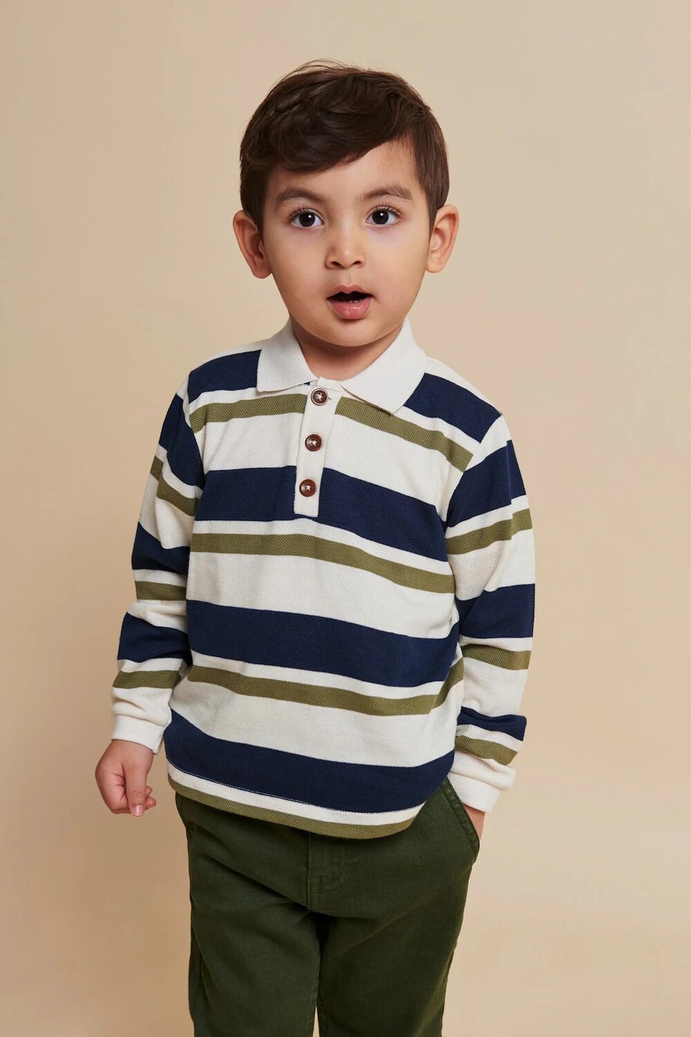 STRIPED PIQUE POLO W. LS - GREEN - Copenhagen Colors 3Y