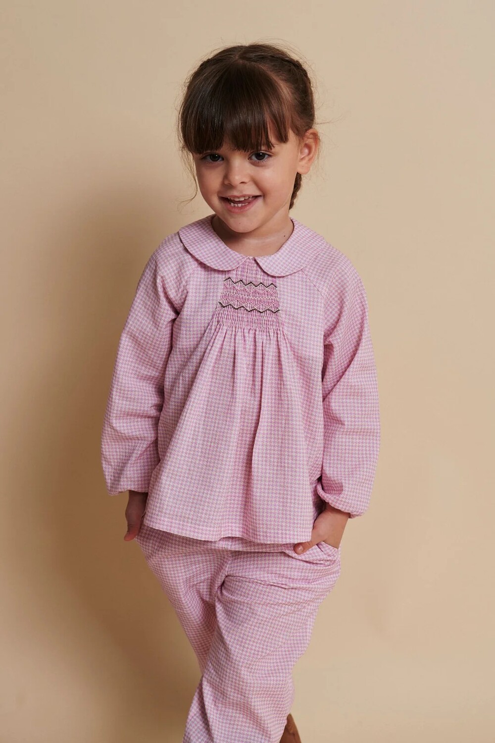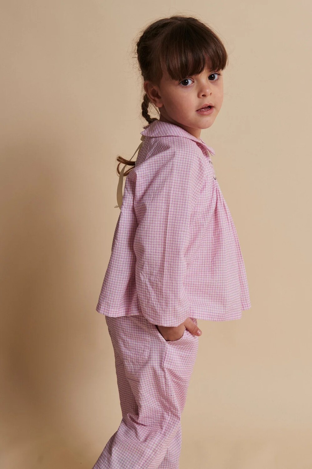 HOUNDSTOOTH BLOUSE W. HANDMADE EMB. SMOCK - SYRINGA COMB- Copenhagen Colors 3Y
