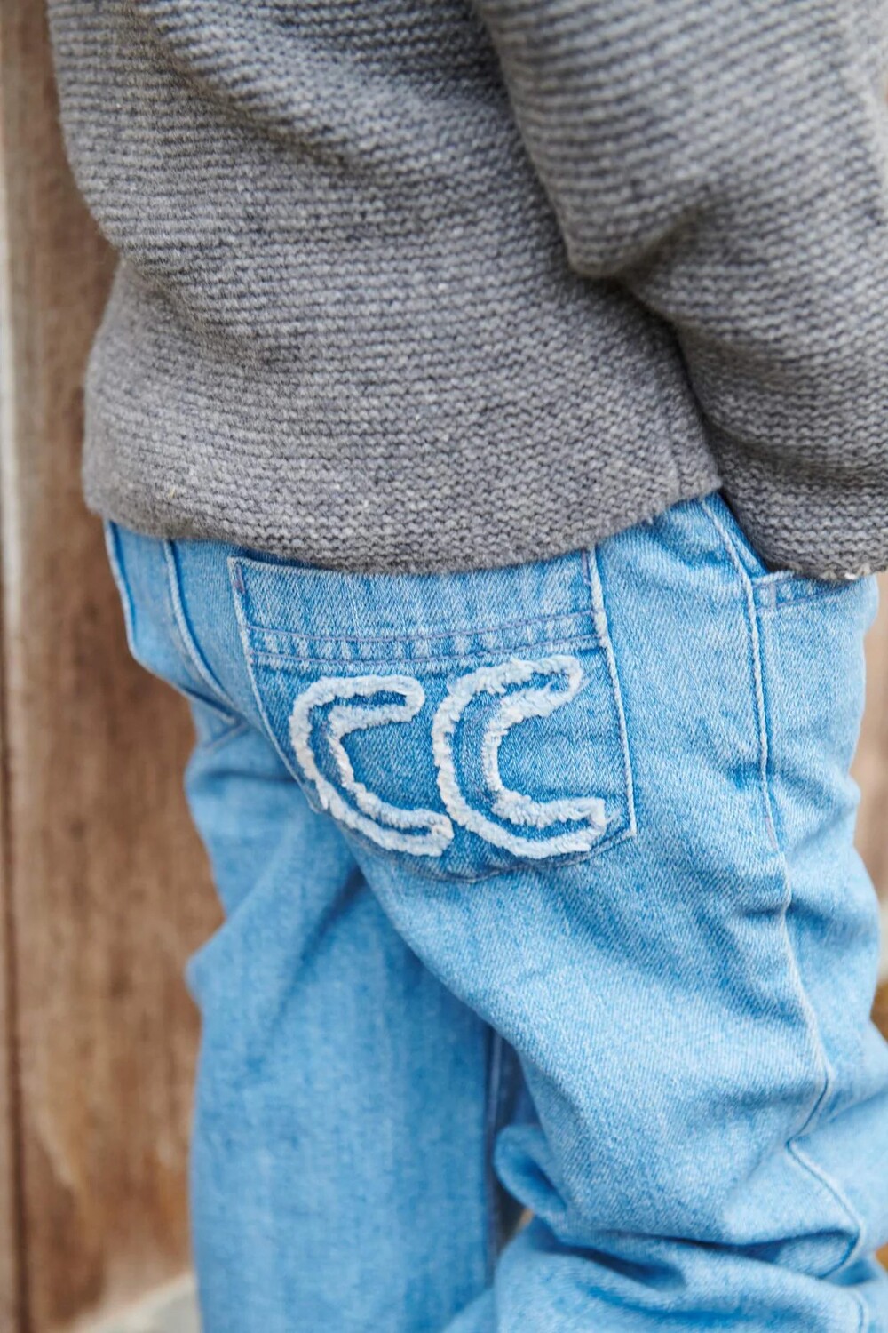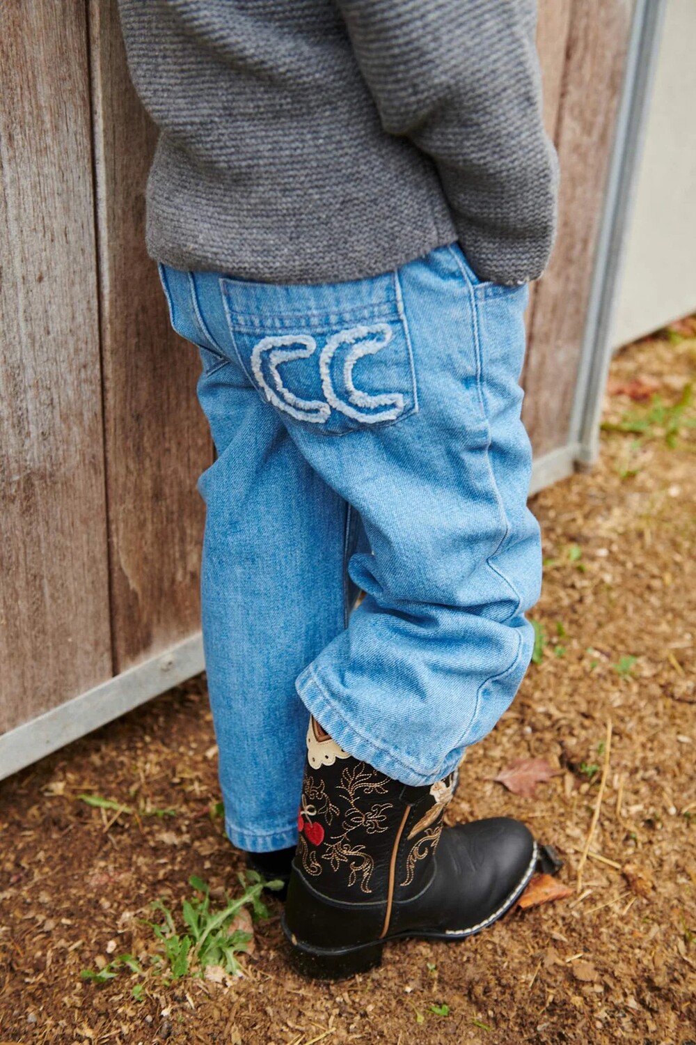 ORGANIC DENIM PANTS W. POCKET EMBROIDERY & WIDE - LT -Copenhagen Colors 3Y