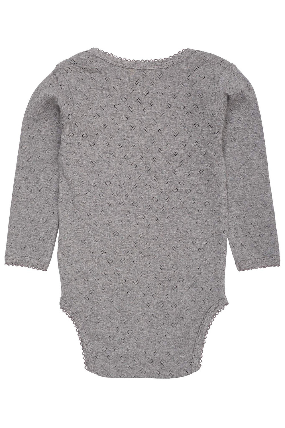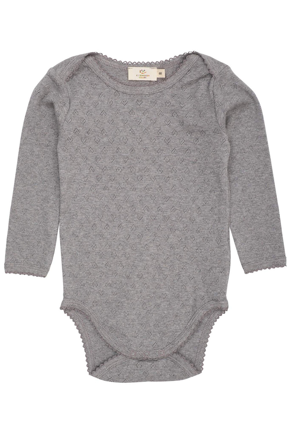 POINTELLE HEART LAPNECK BODY LS - GREY MEL. -Copenhagen Colors