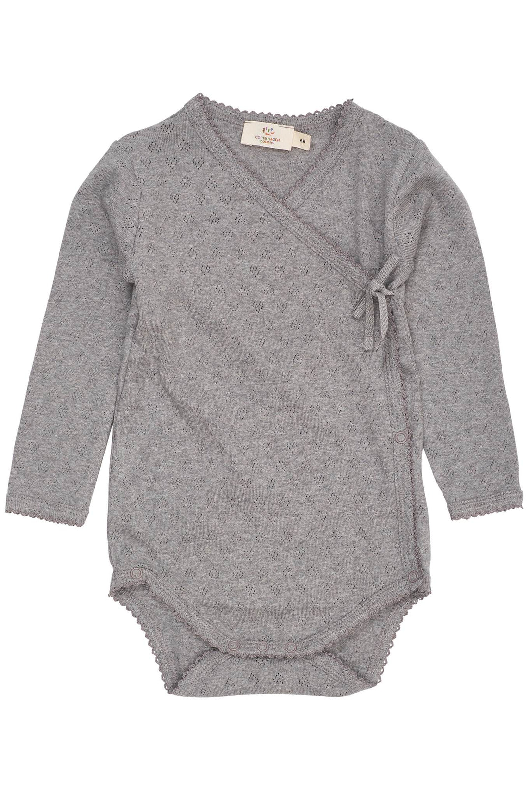 POINTELLE HEART CROSSOVER BODY LS - GREY MEL.-Copenhagen Colors