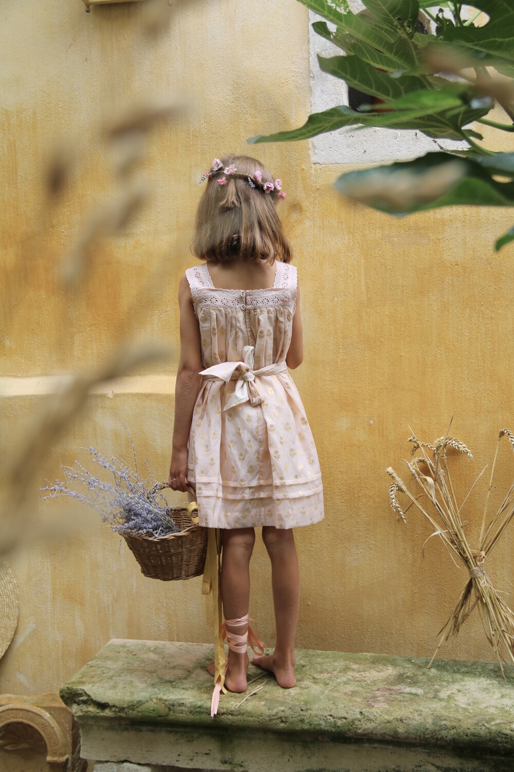 ELEONORE Dress_Flowers lurex light pink Chanderi_Bonjour