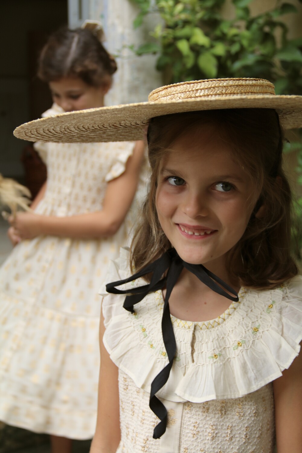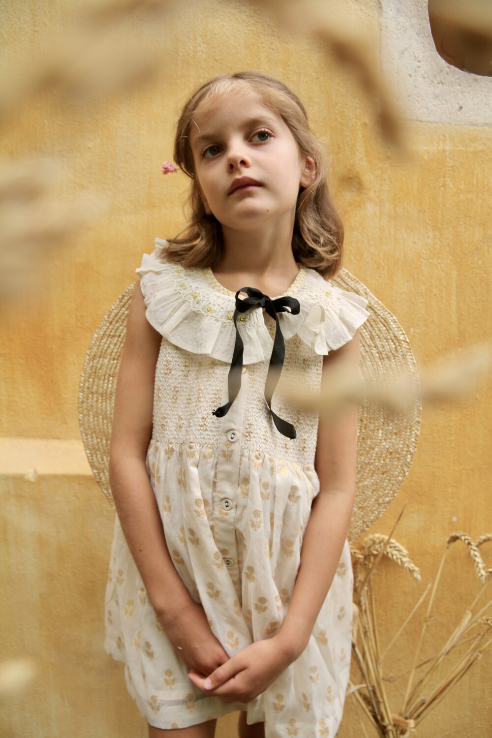 Ibiza top + Hairclip_Flowers lurex ecru Chanderi_Bonjour