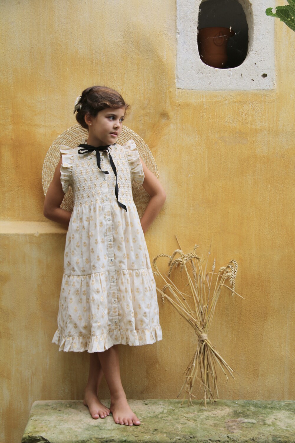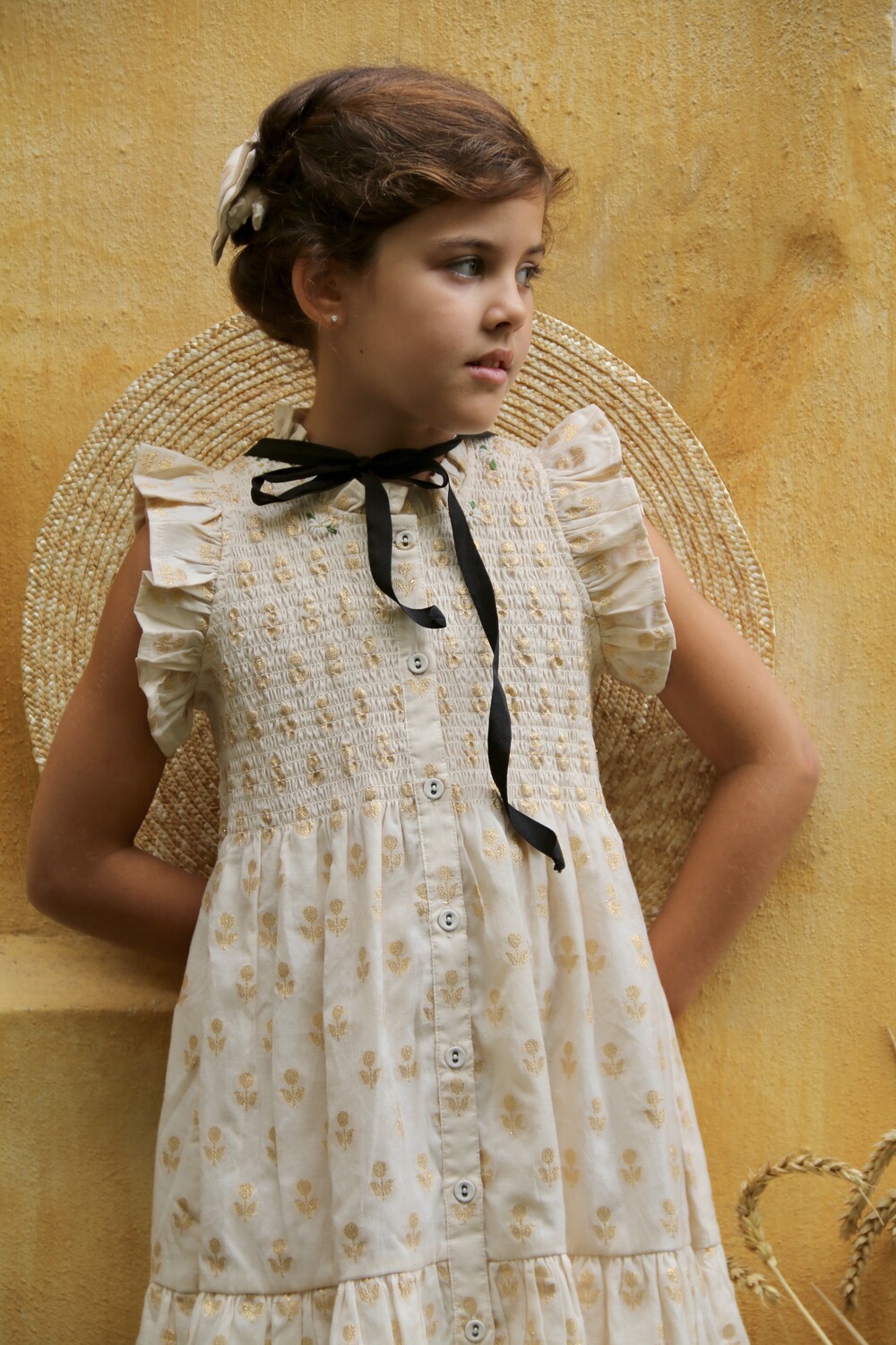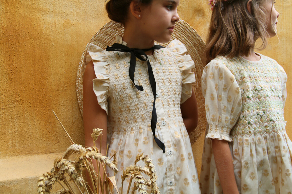 Ibiza Dress_Flowers lurex ecru Chanderi_Bonjour