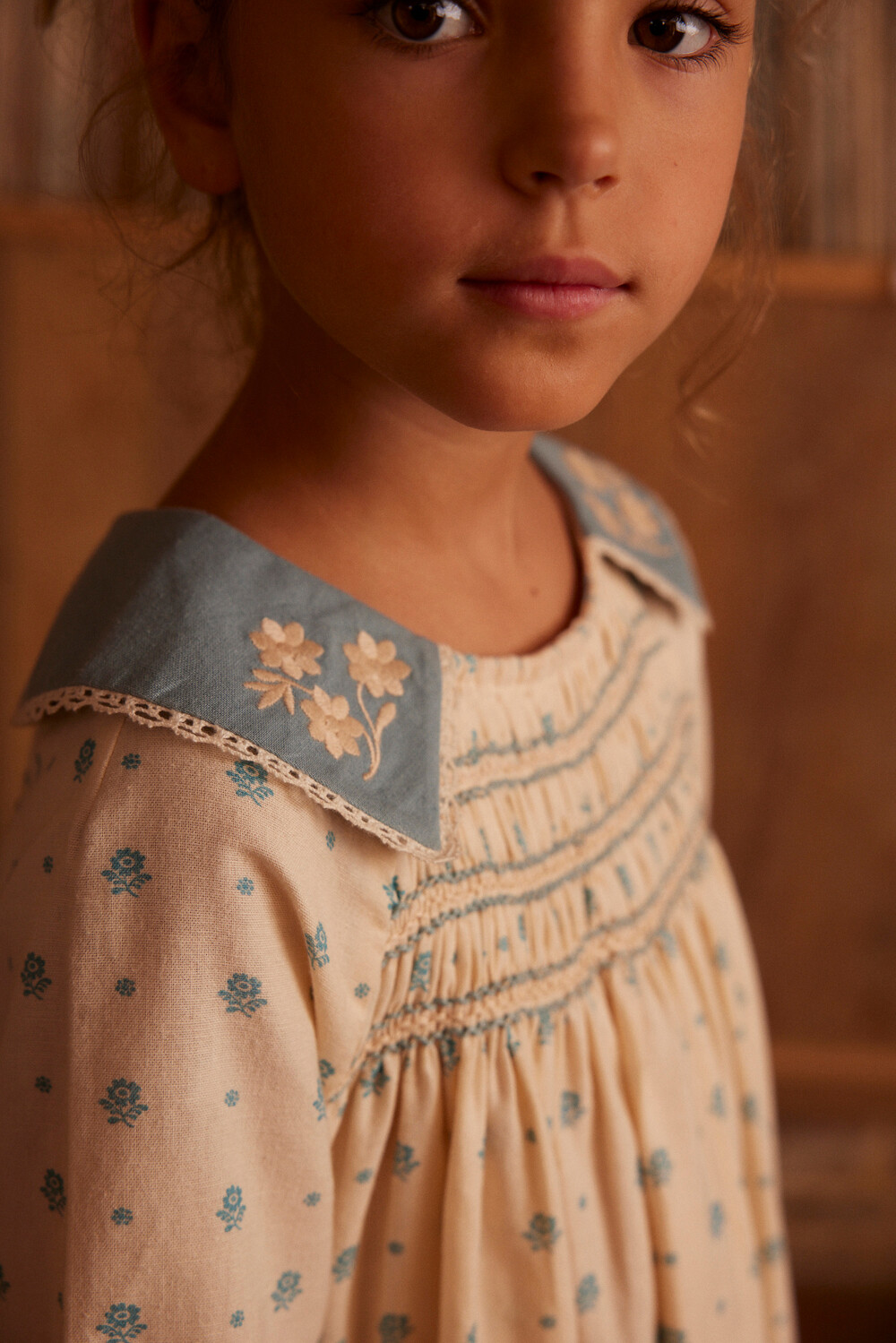 WILLOW SMOCK SHIFT DRESS-MEADOW CALICO CASHEW-Apolina
