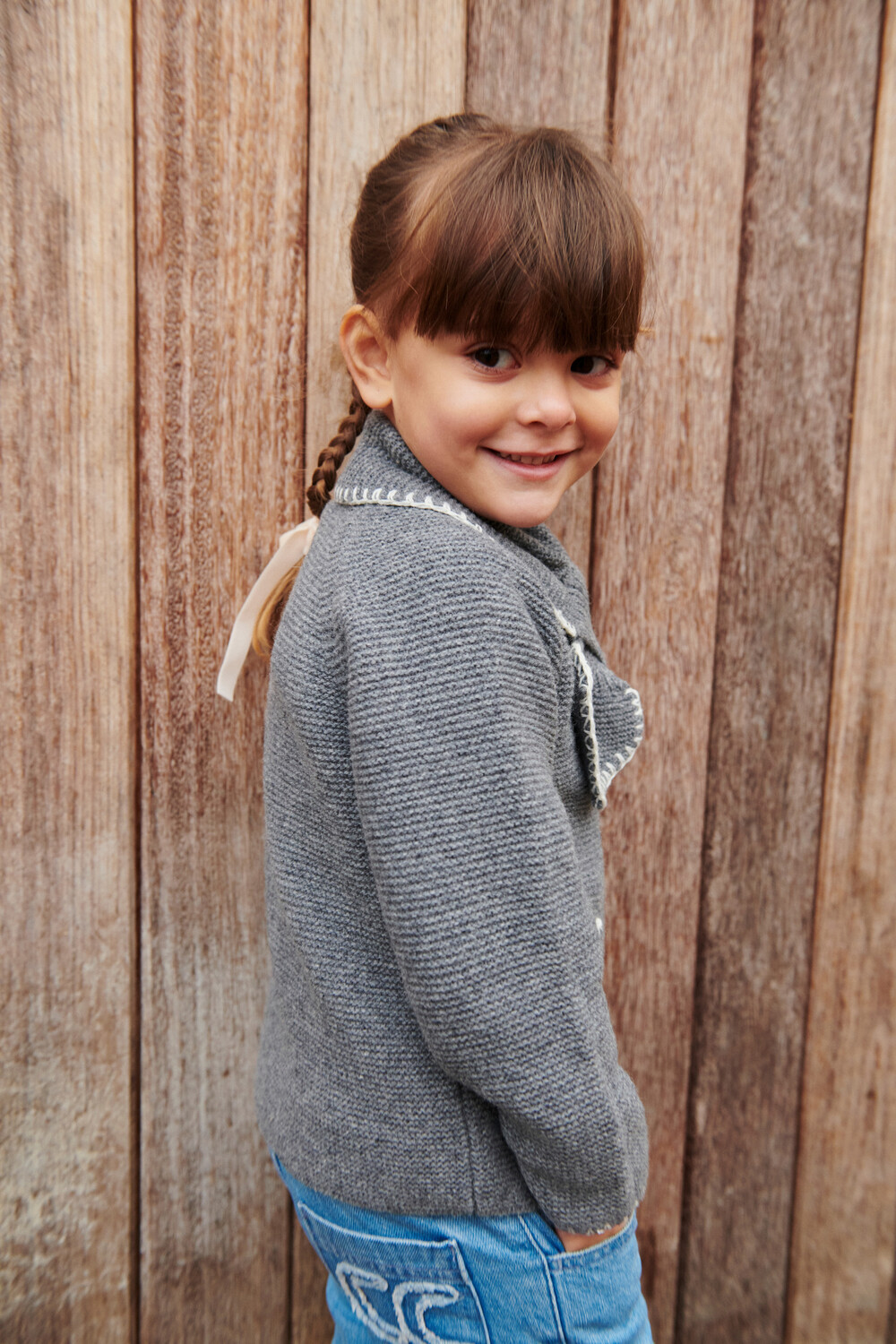 LAMBSWOOL CARDIGAN W. COLLAR_DK GREY/CREAM COMB_Copenhagen Color