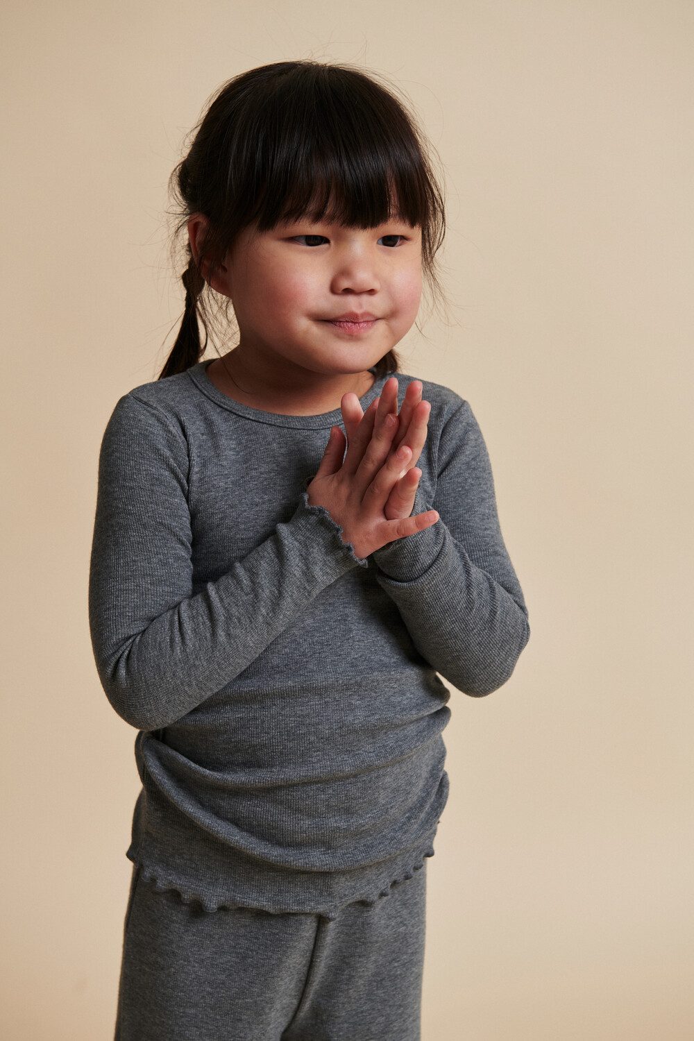 MODAL RIB LS TEE W. HEART HOLE PATTERN_GREY MEL_Copenhagen Color