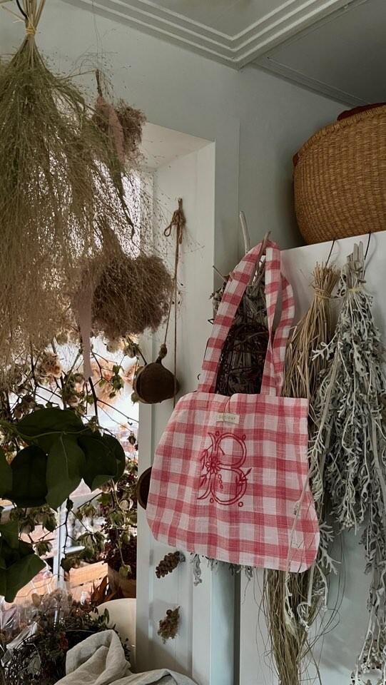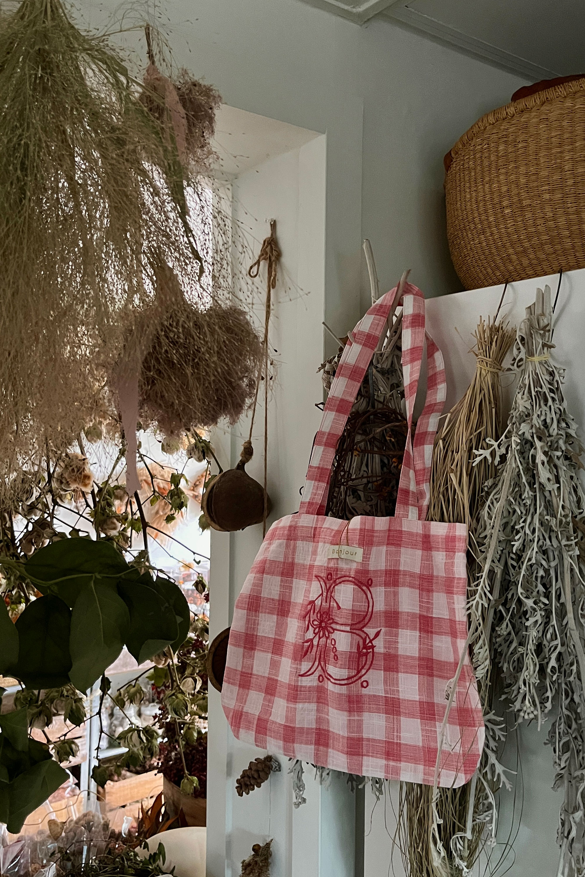 (JEJU)Eco Bag with embroidery_Pink Gingham