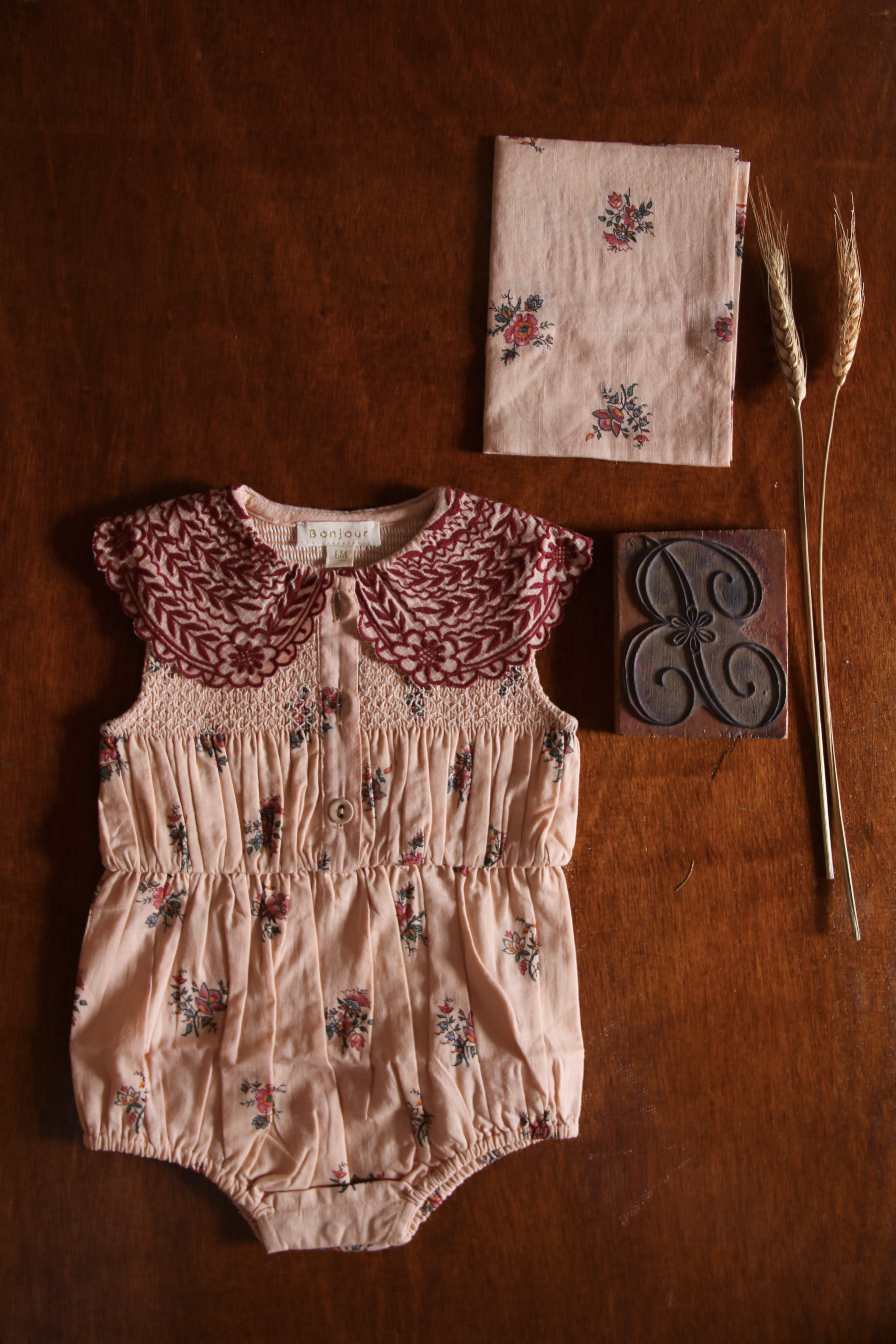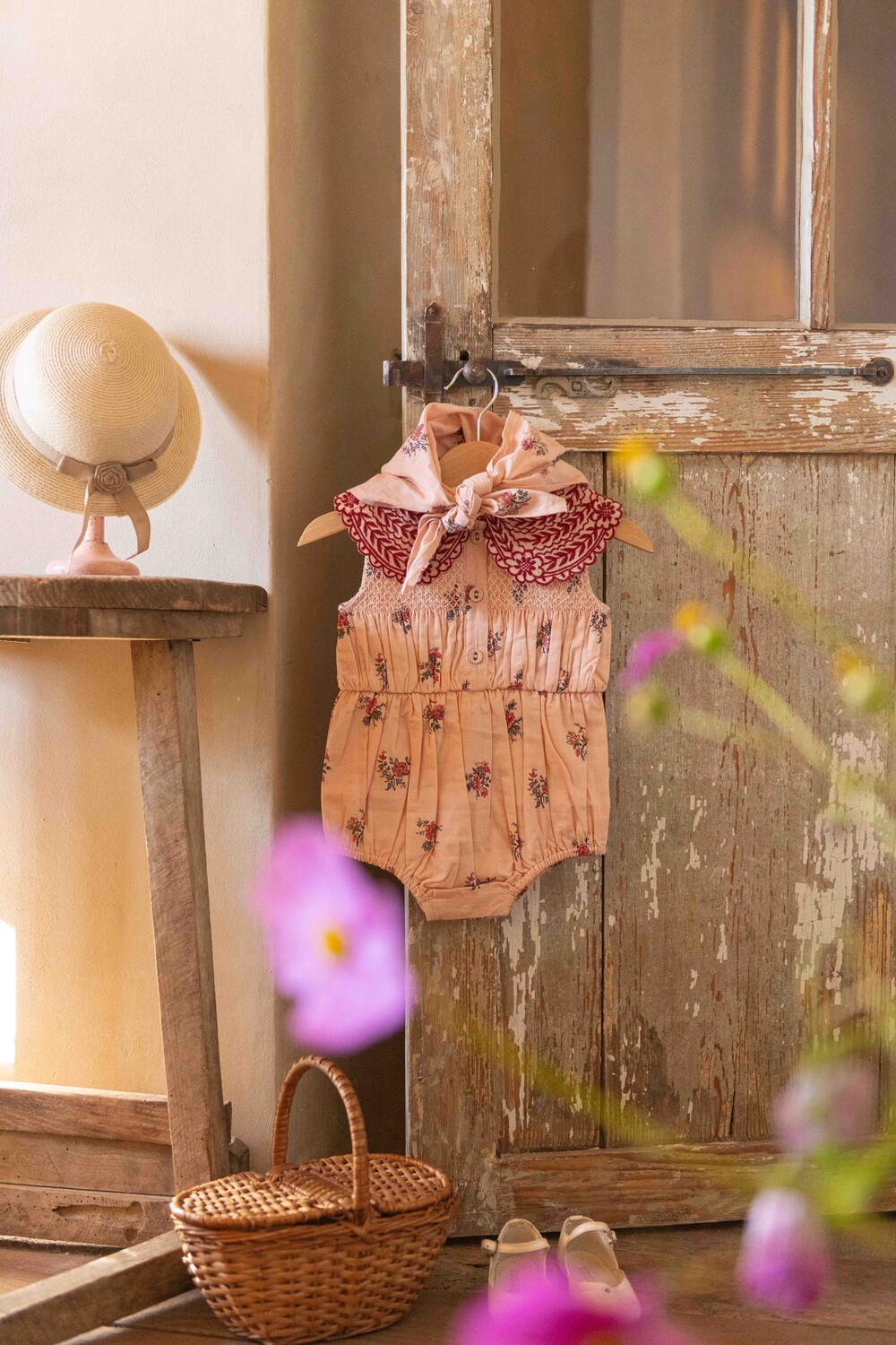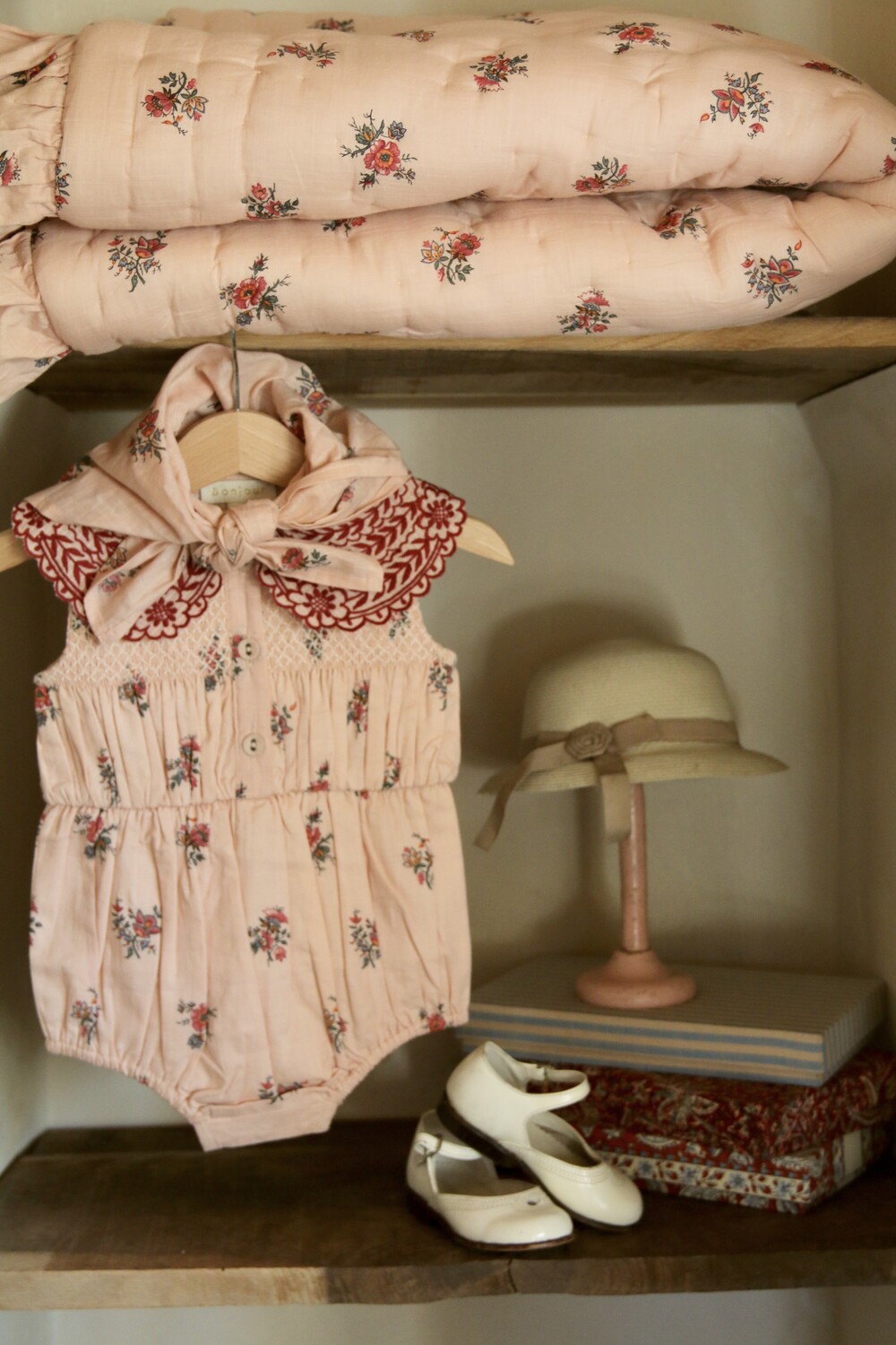 Romper with scarf Pink garden flowers print - cotton voile_Bonjour