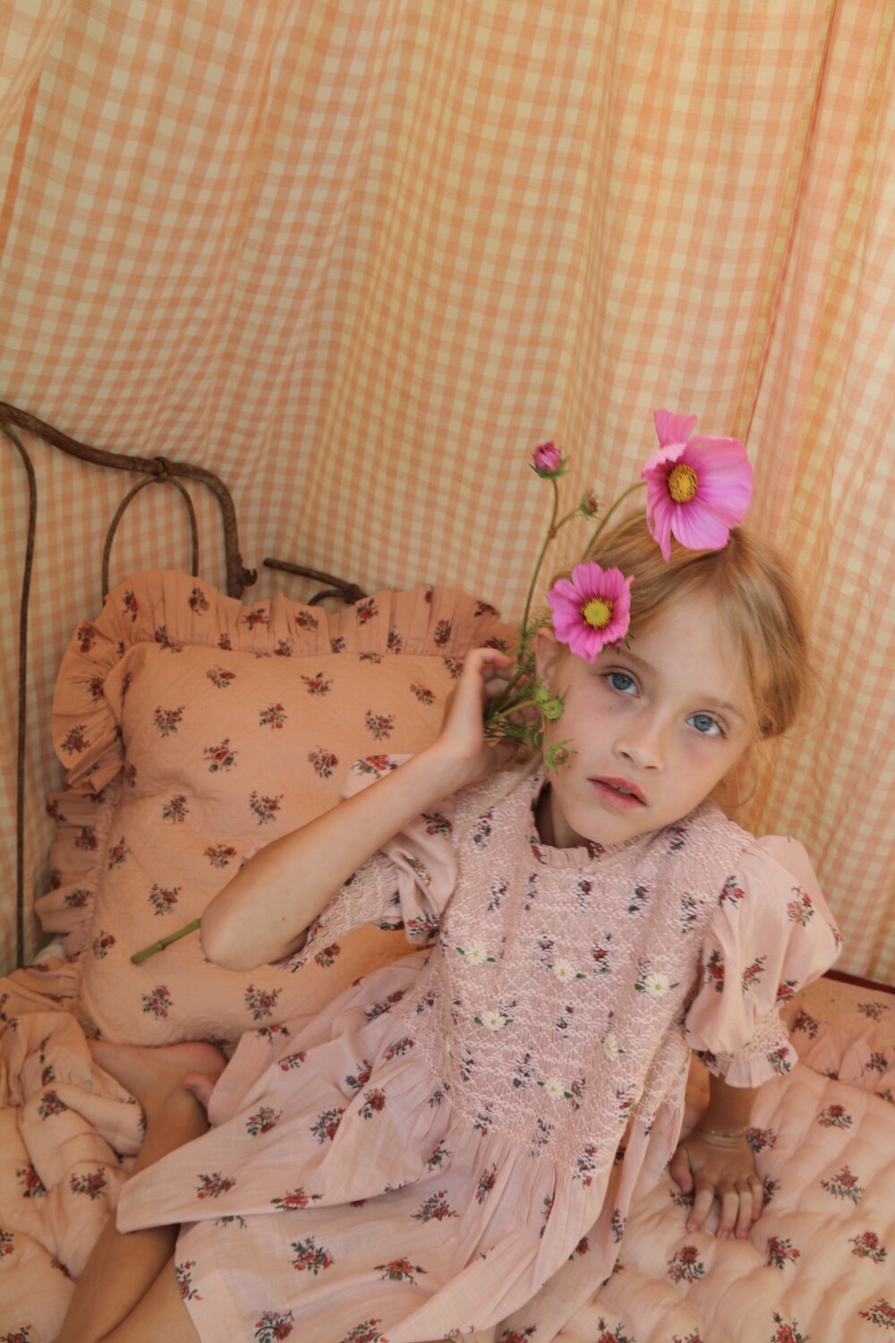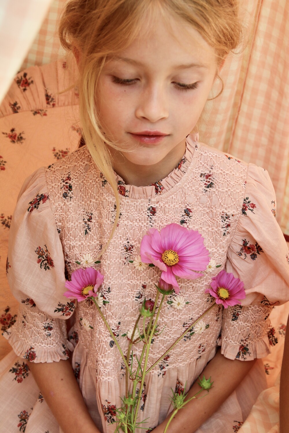 Handsmocks blouse_Pink garden flowers print - cotton voile_Bonjour