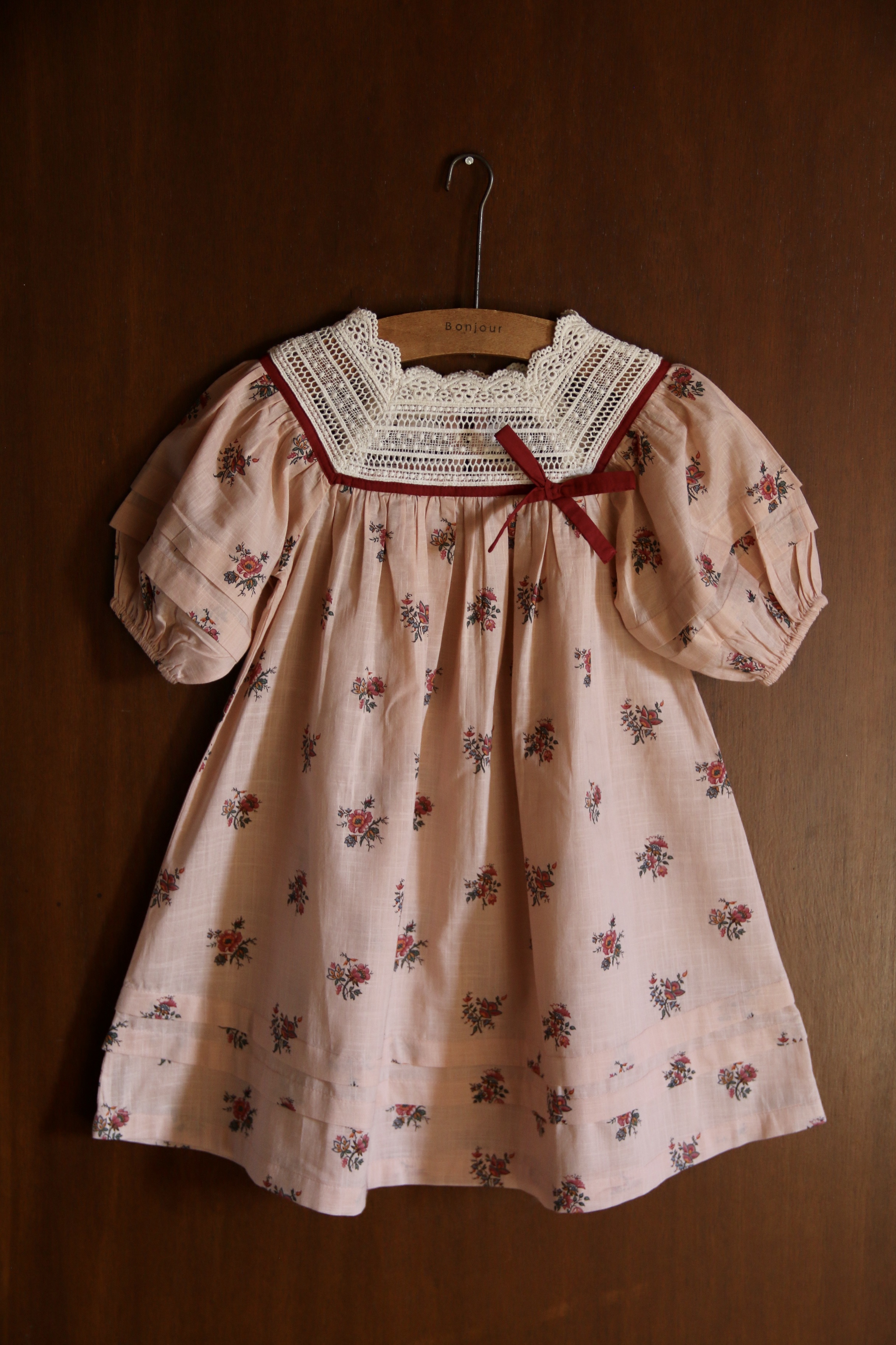 Princess dress_Pink garden flowers print - cotton voile_Bonjour