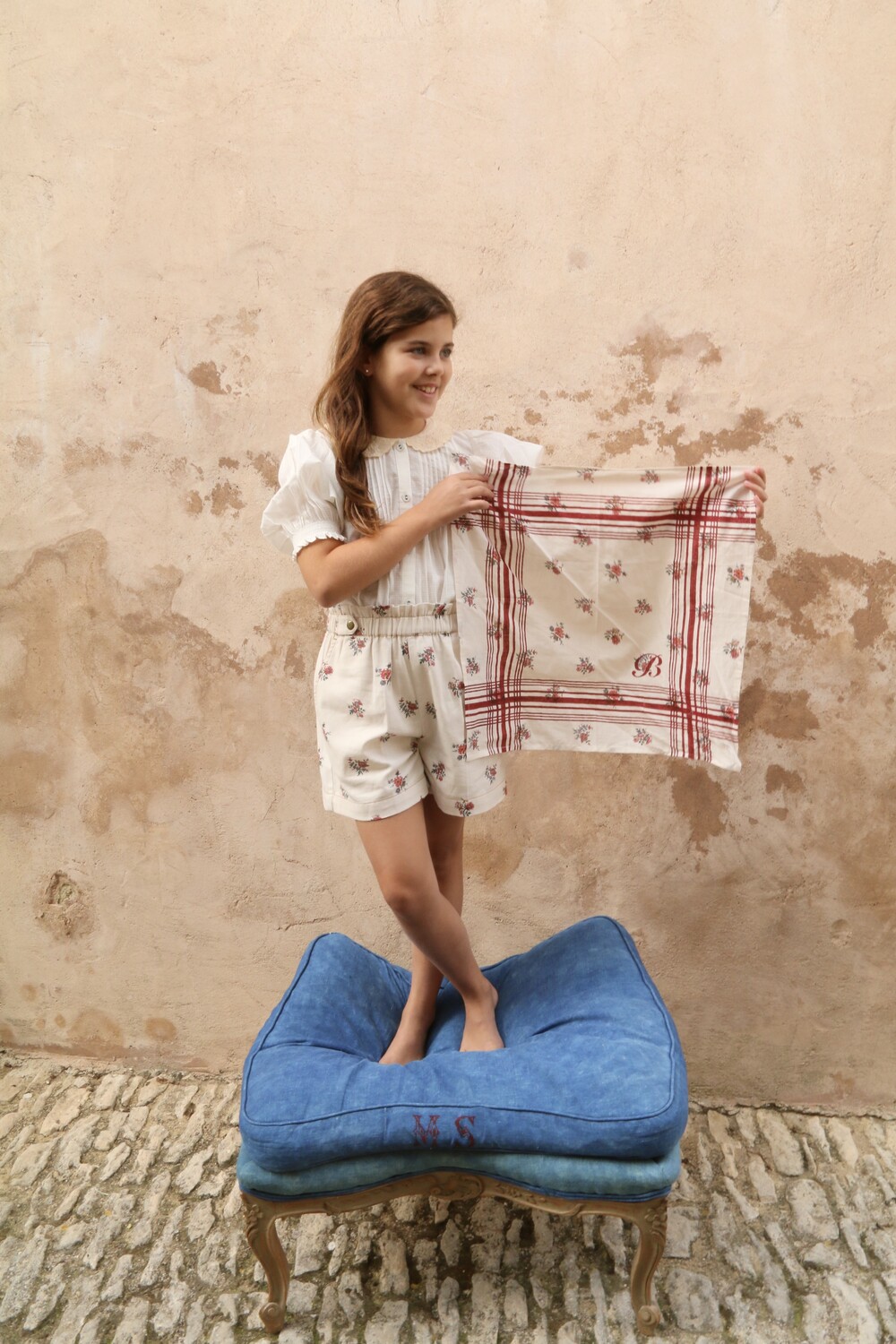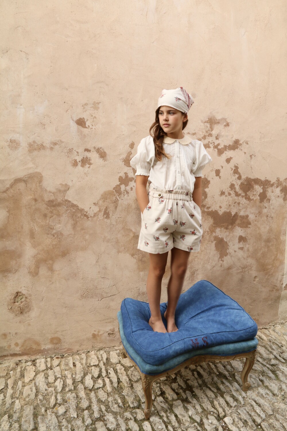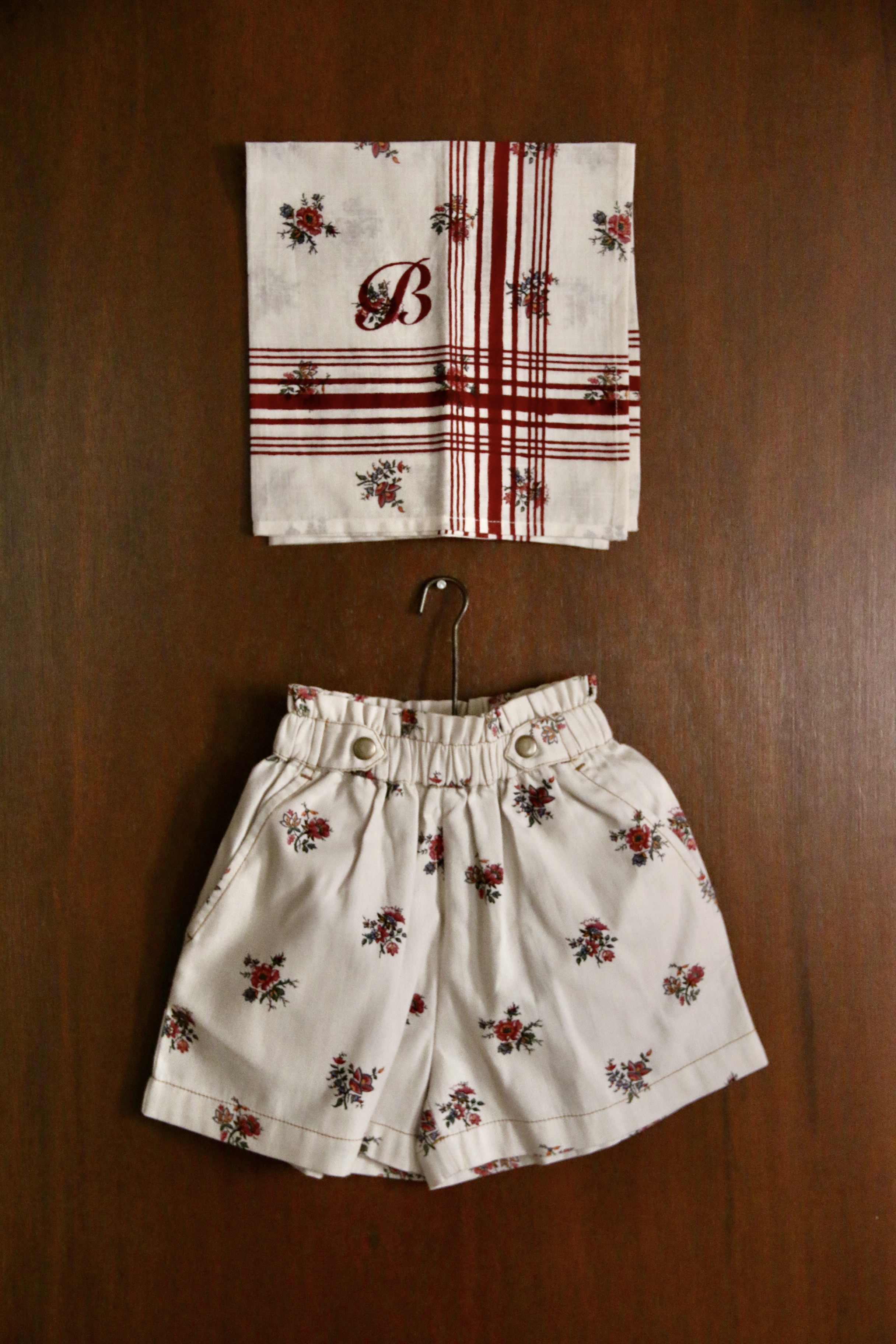 Shorts with scarf_Garden flowers print - Denim_Bonjour