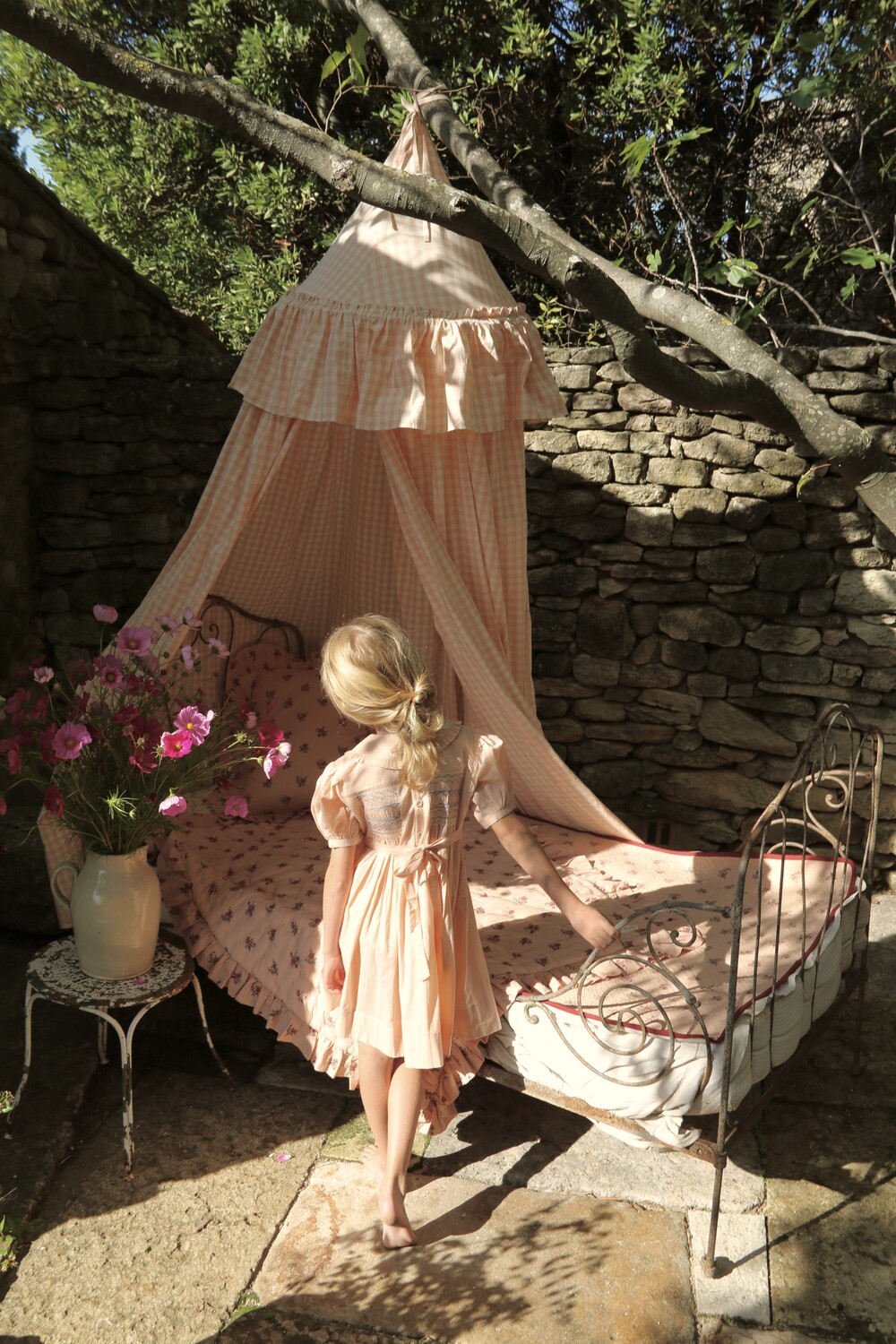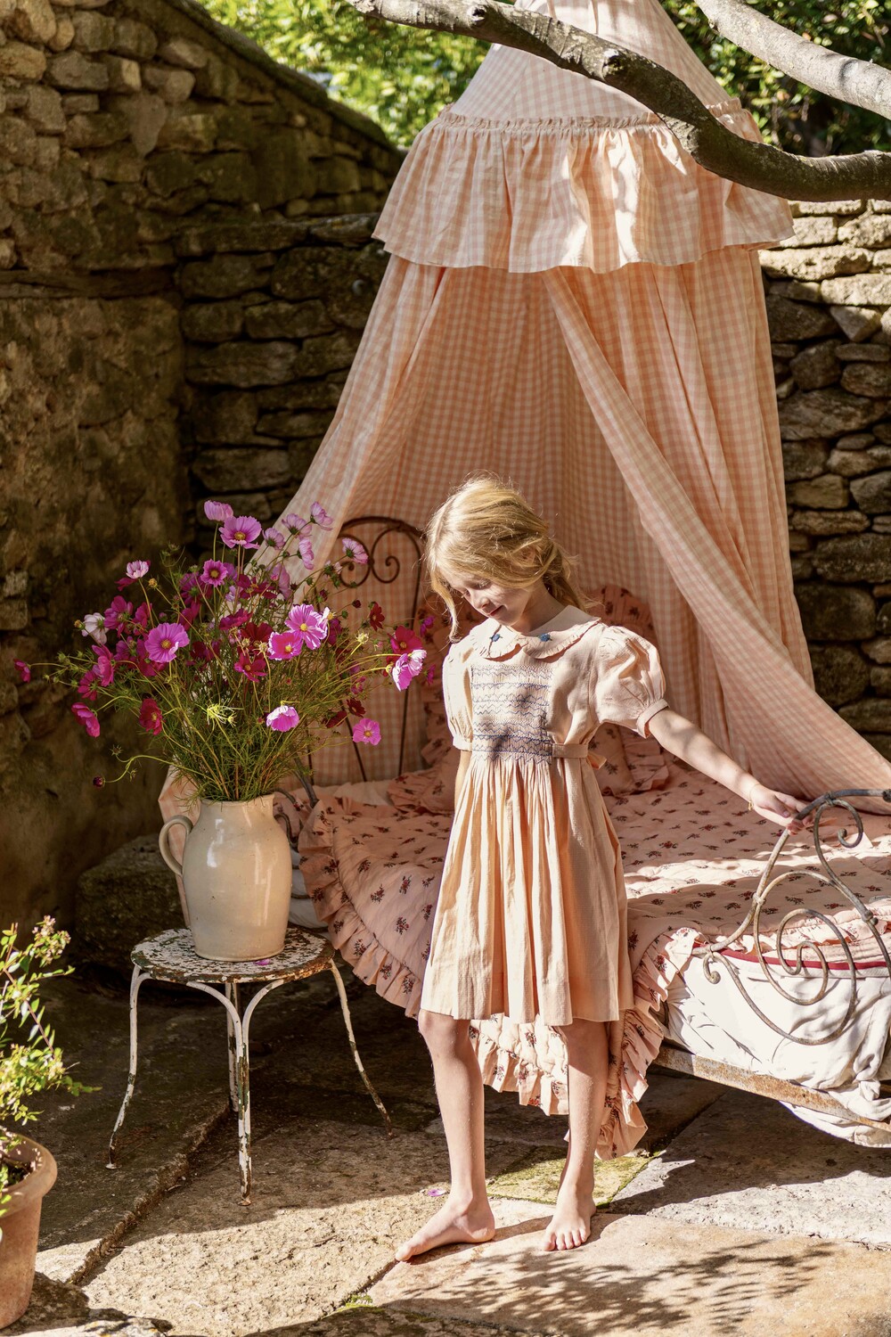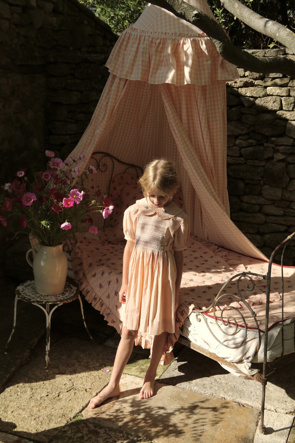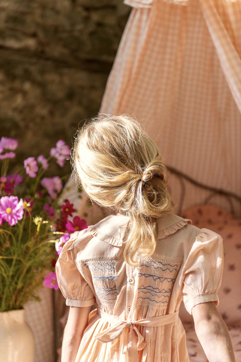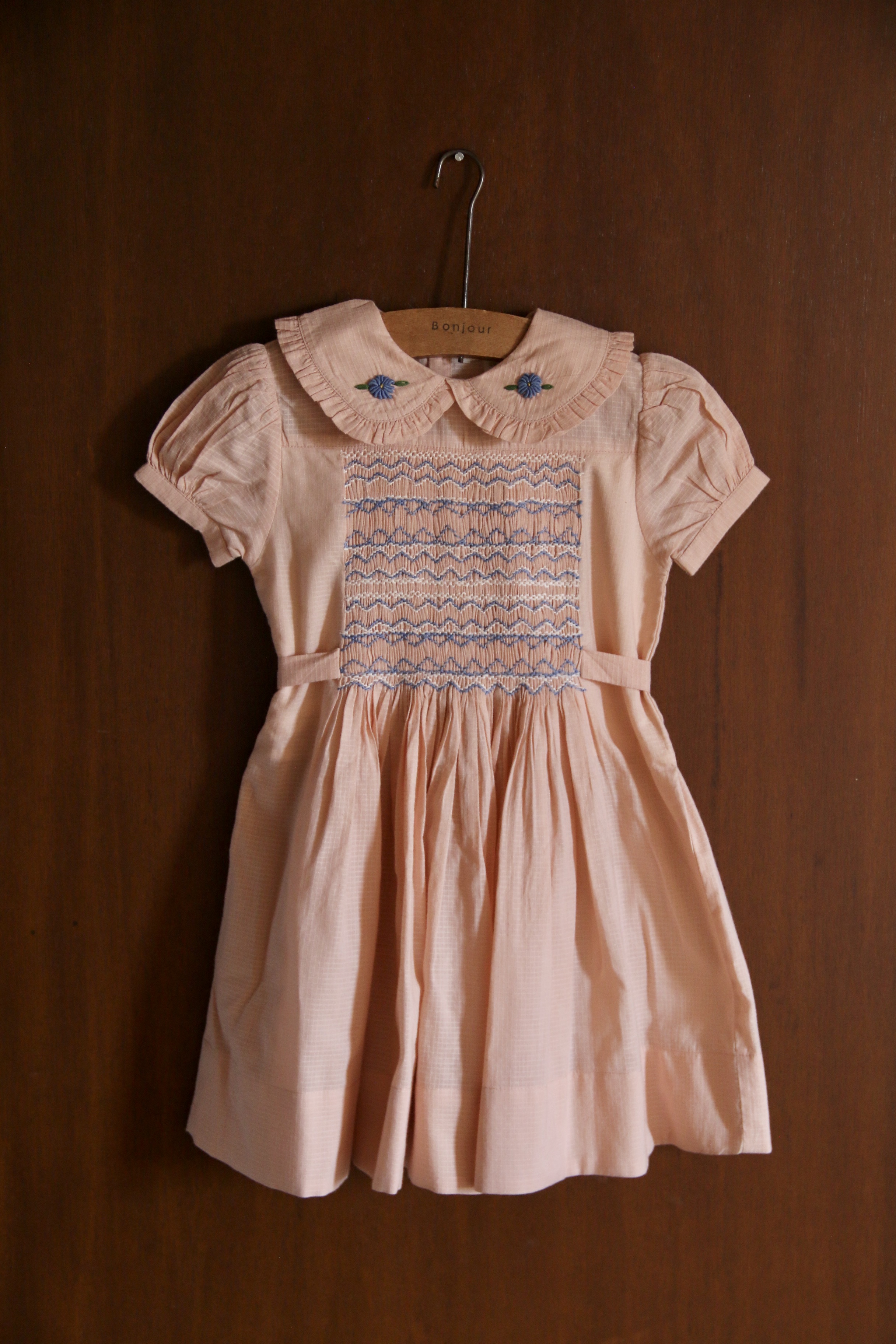 Handsmock dress_Pink check voile_Bonjour