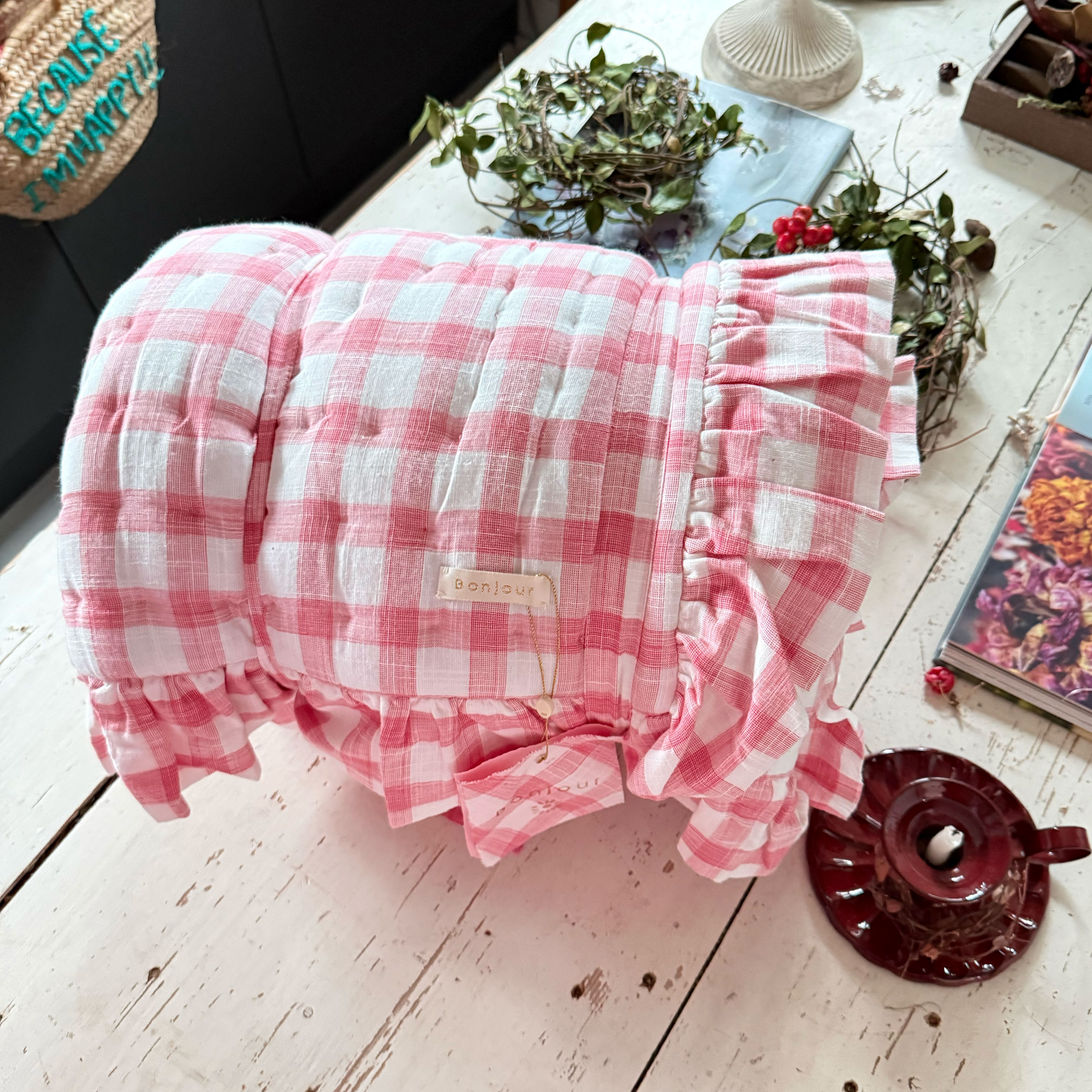 (JEJU)Quilted Blanket_Pink Gingham 90*120