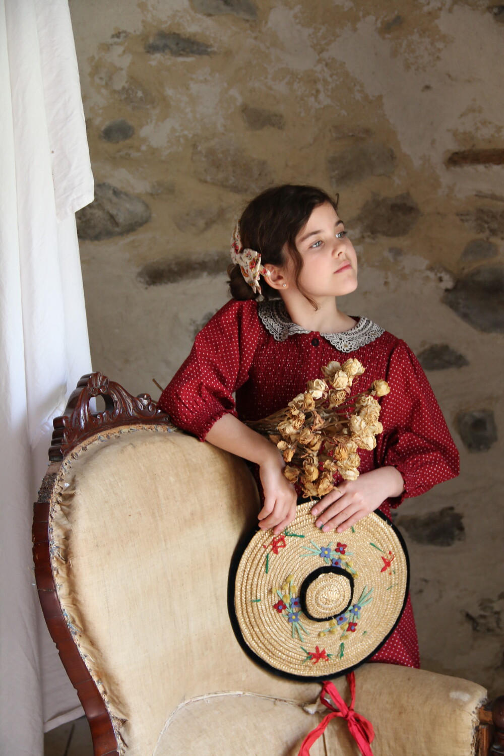 TUNIQUE WITH HAIR CLIP_Red white dot print_Bonjour