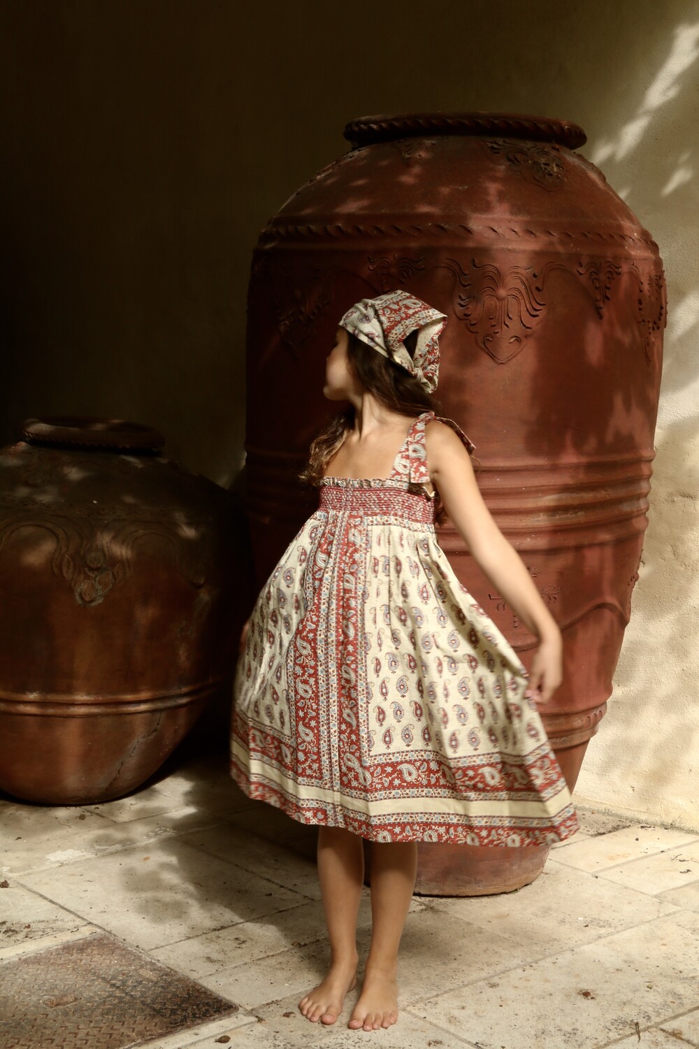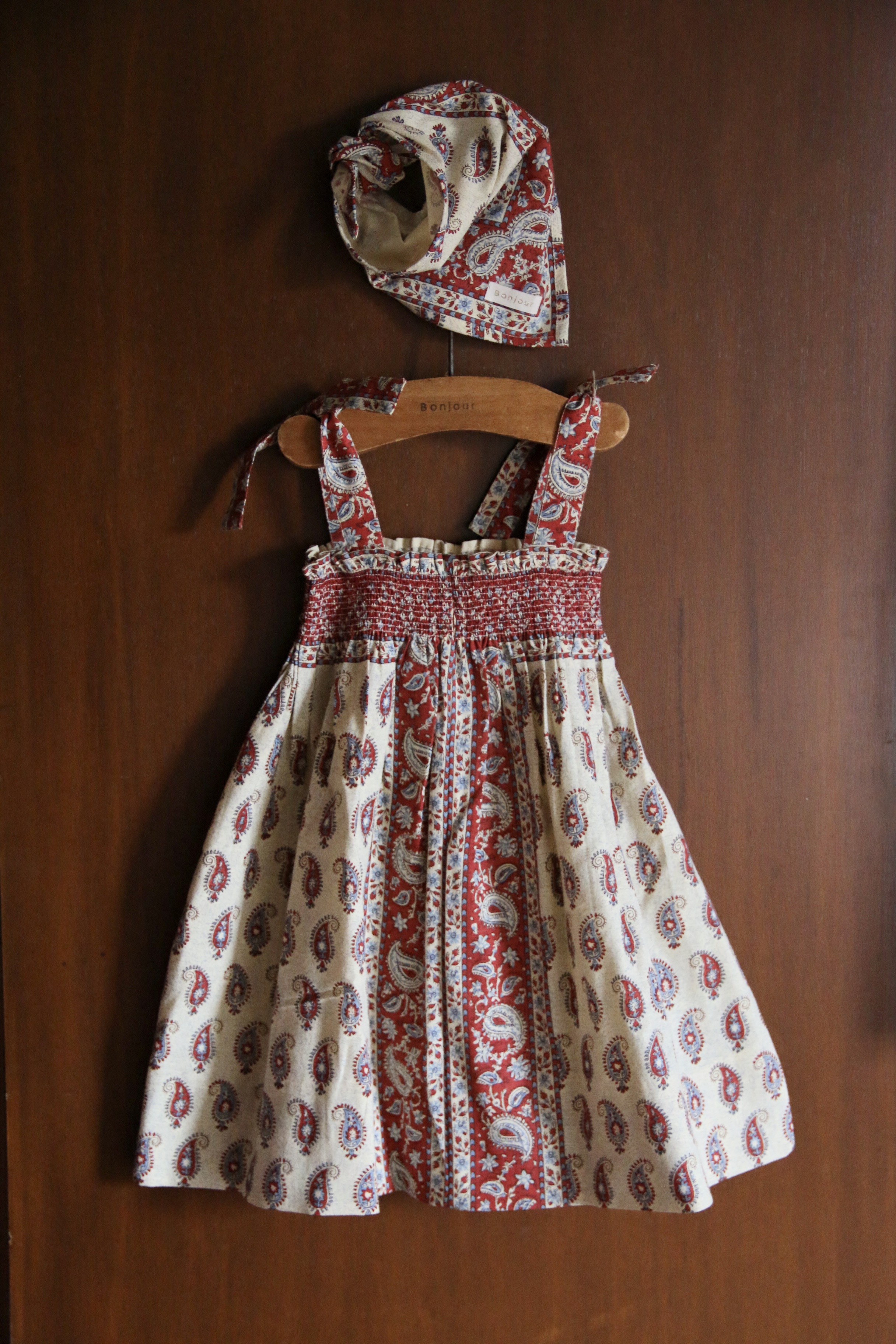 Skirt dress with scarf_Cashmere bandana print -Vanilla dyed cotton flex_Bonjour