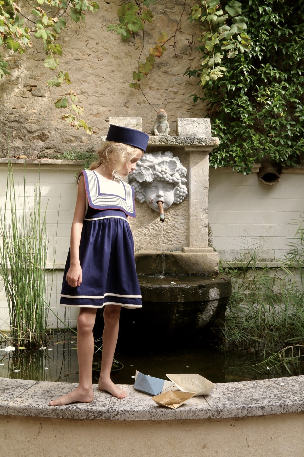 Sailor dress_Dark navy blue solid Denim_Bonjour