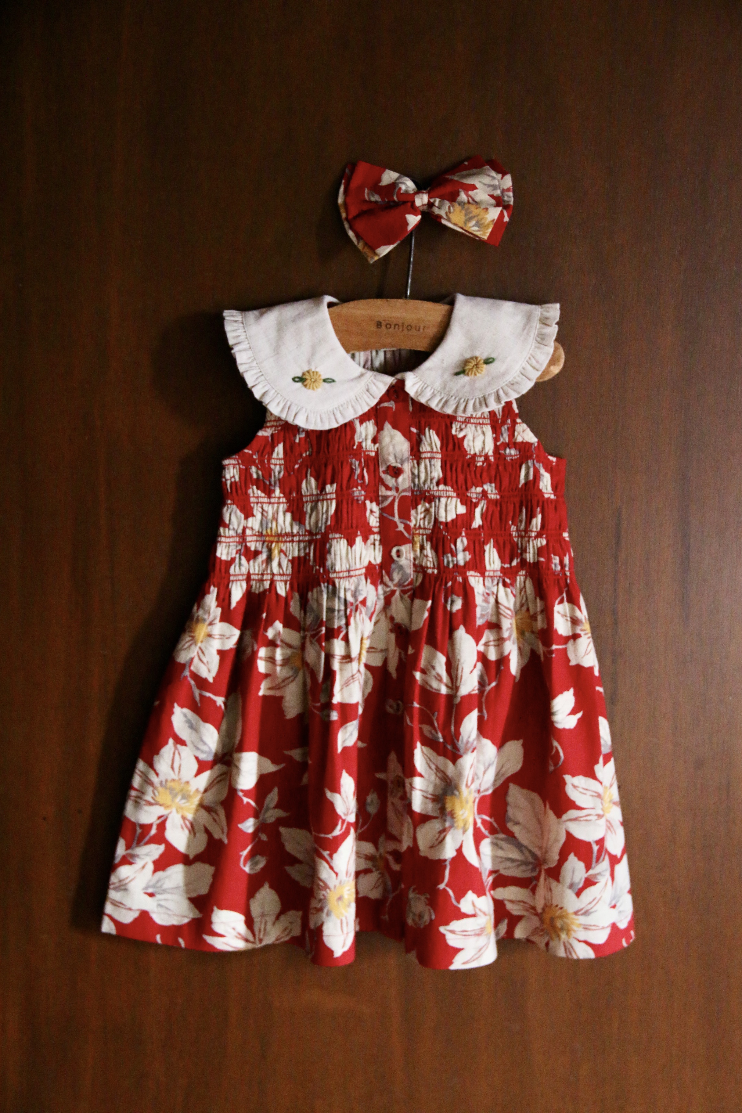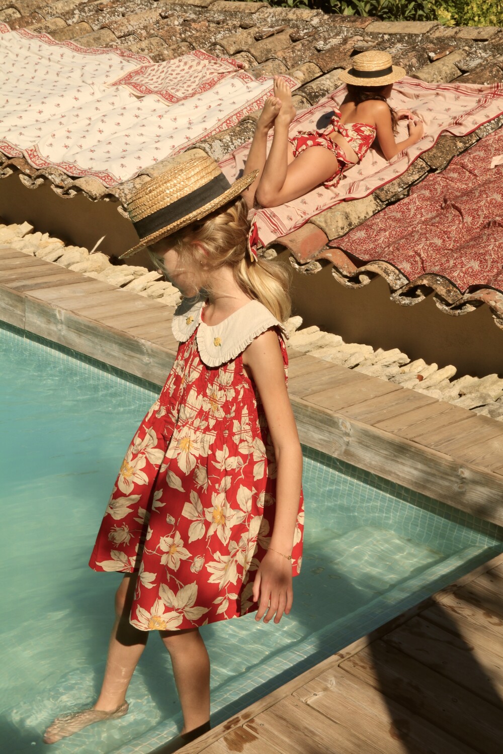 Tunic with hair clip_Gaughin print - Vanilla dyed light canvas_Bonjour