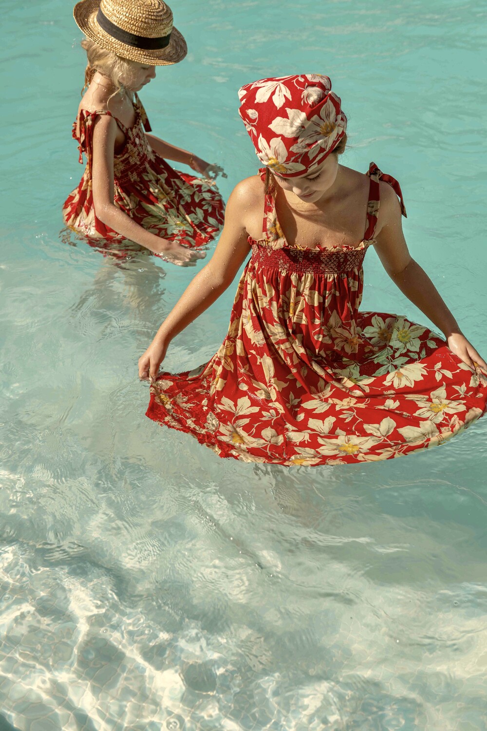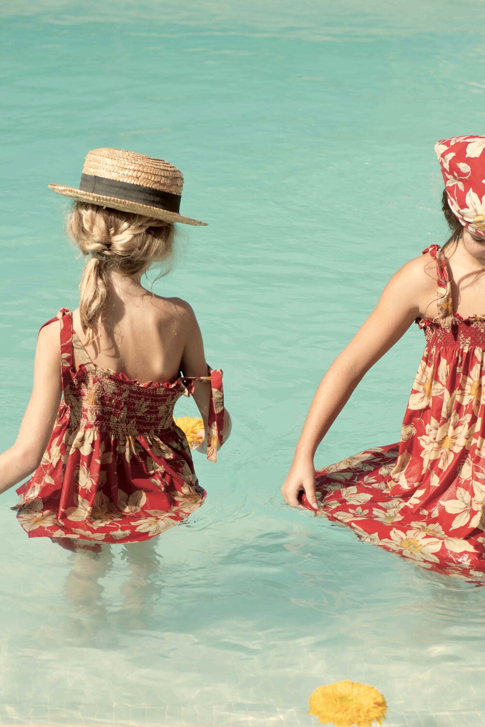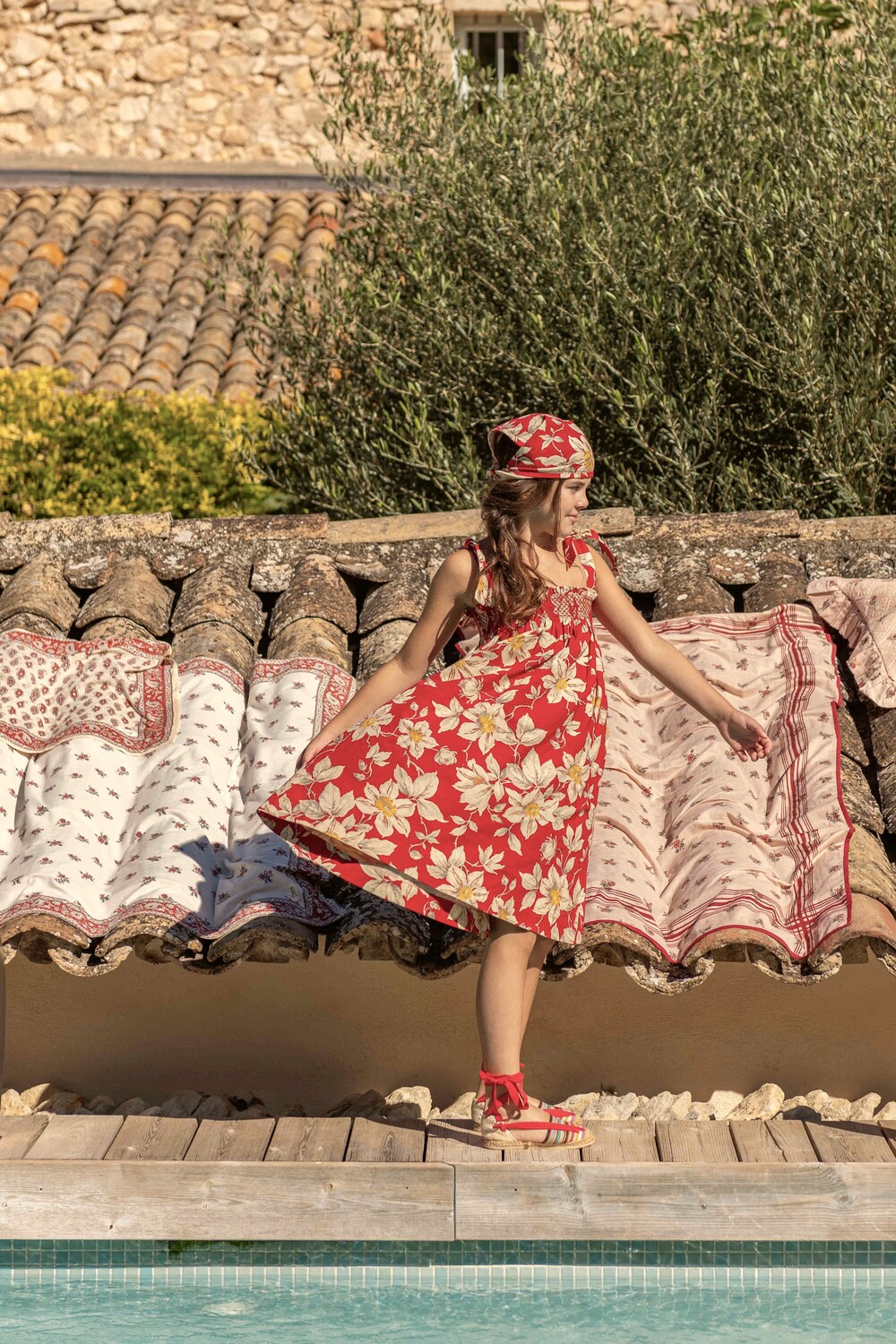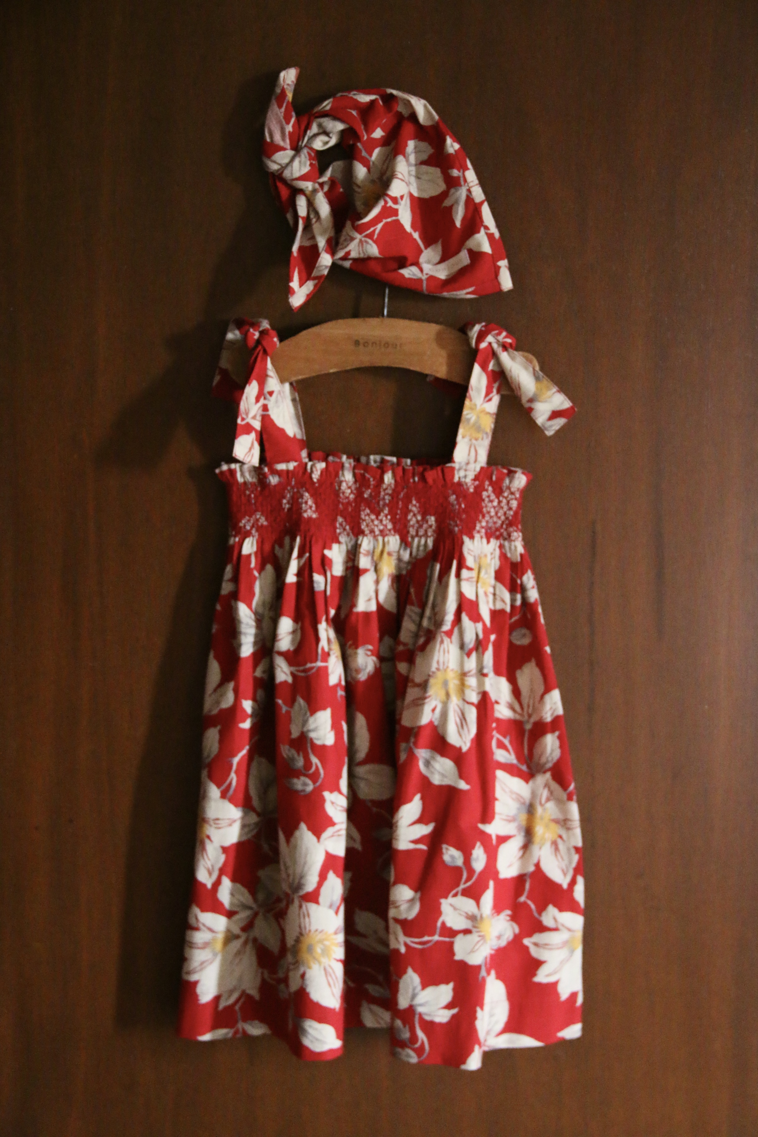 Skirt dress with triangle scarf_Gaughin print Vanilla dyed light canvas_Bonjour
