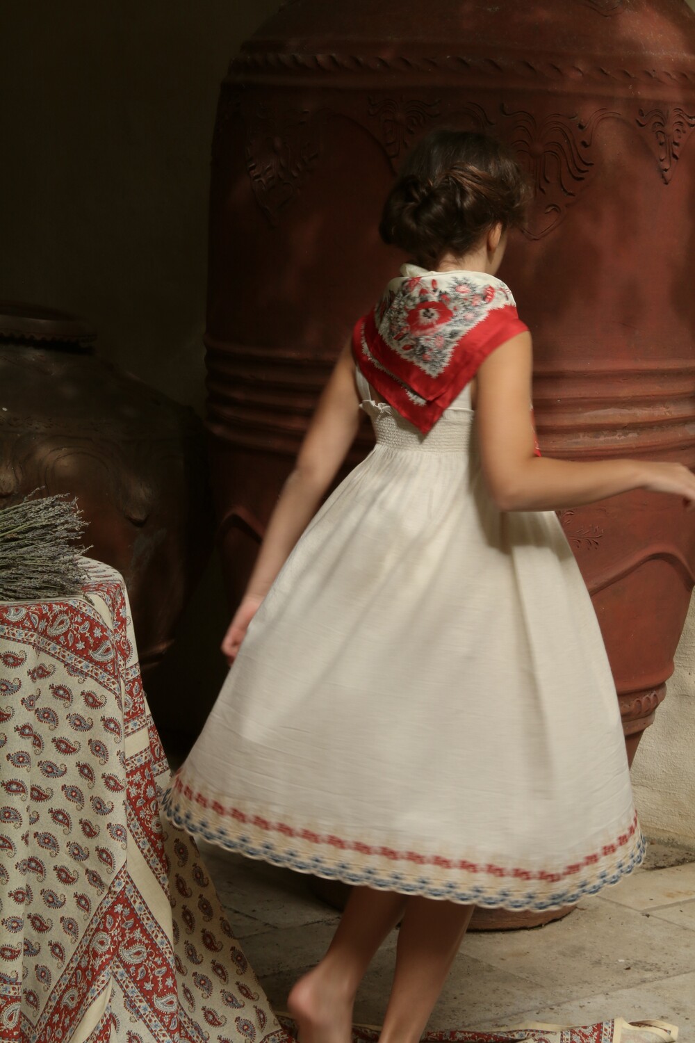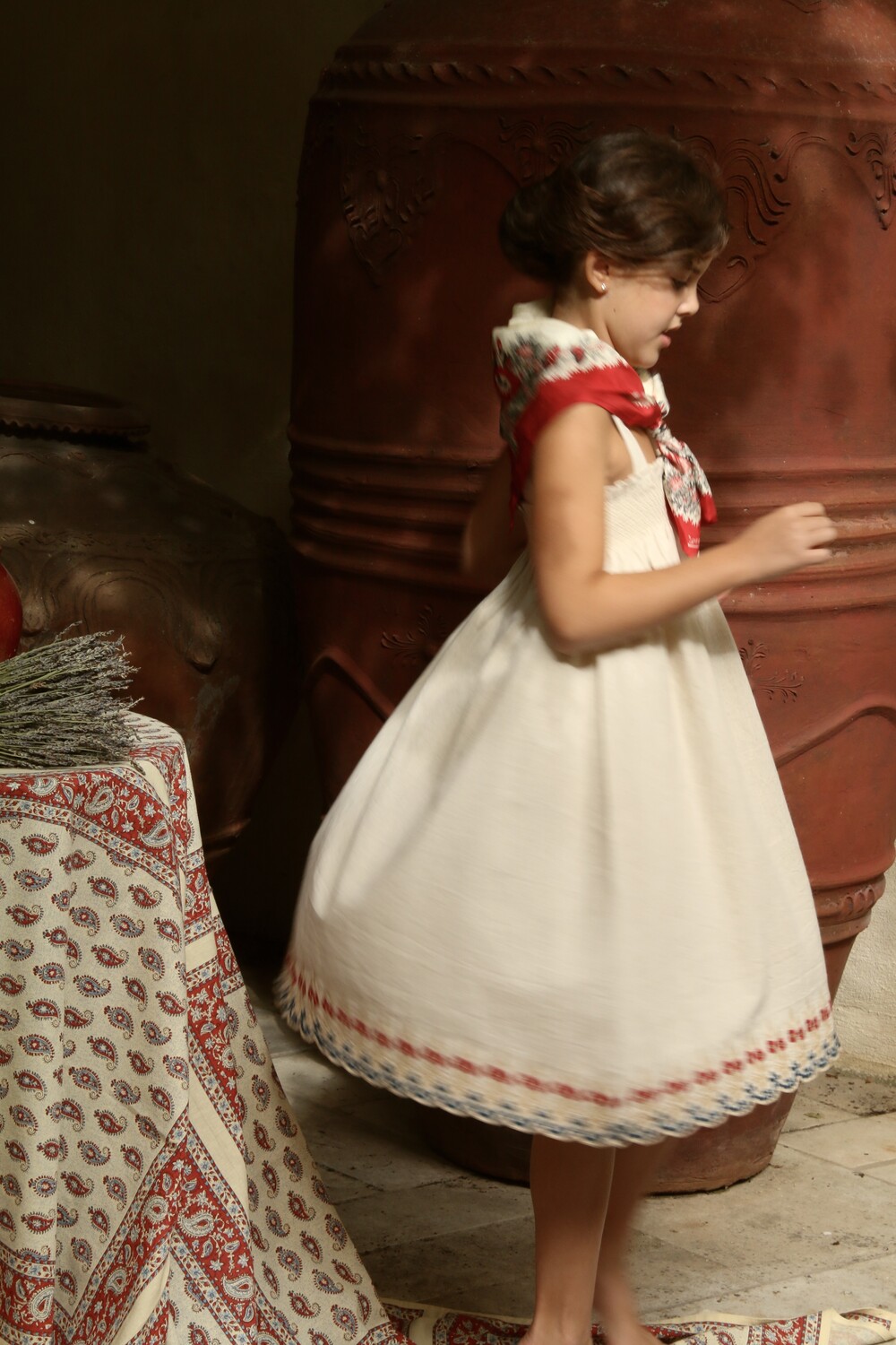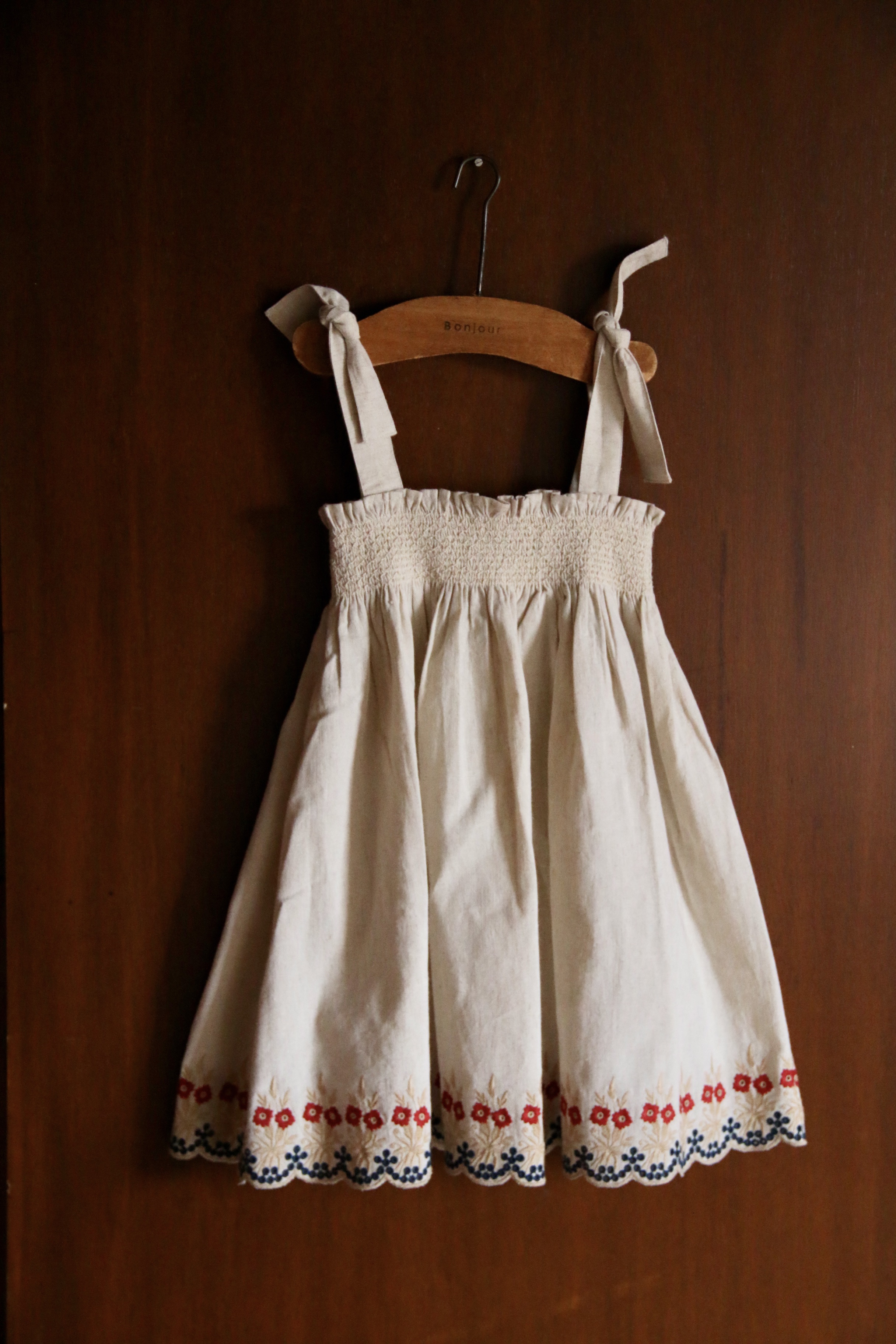 EMBROIDERED Skirt dress_Natural cotton flex with multi color eyelet emb_Bonjour
