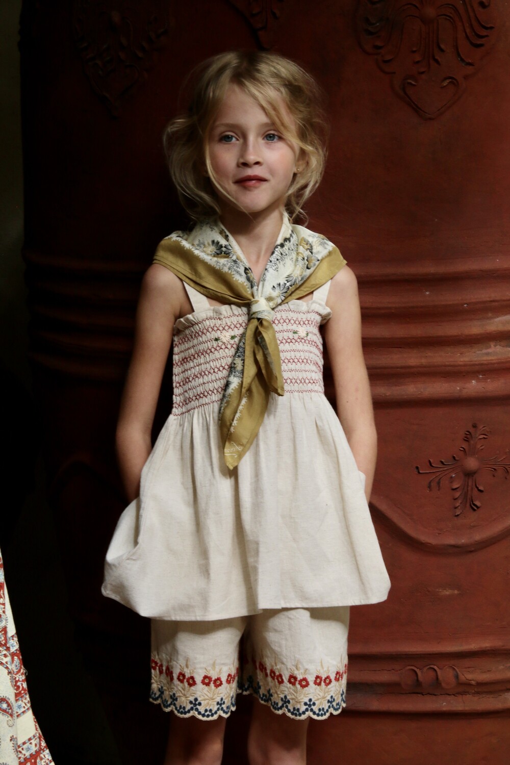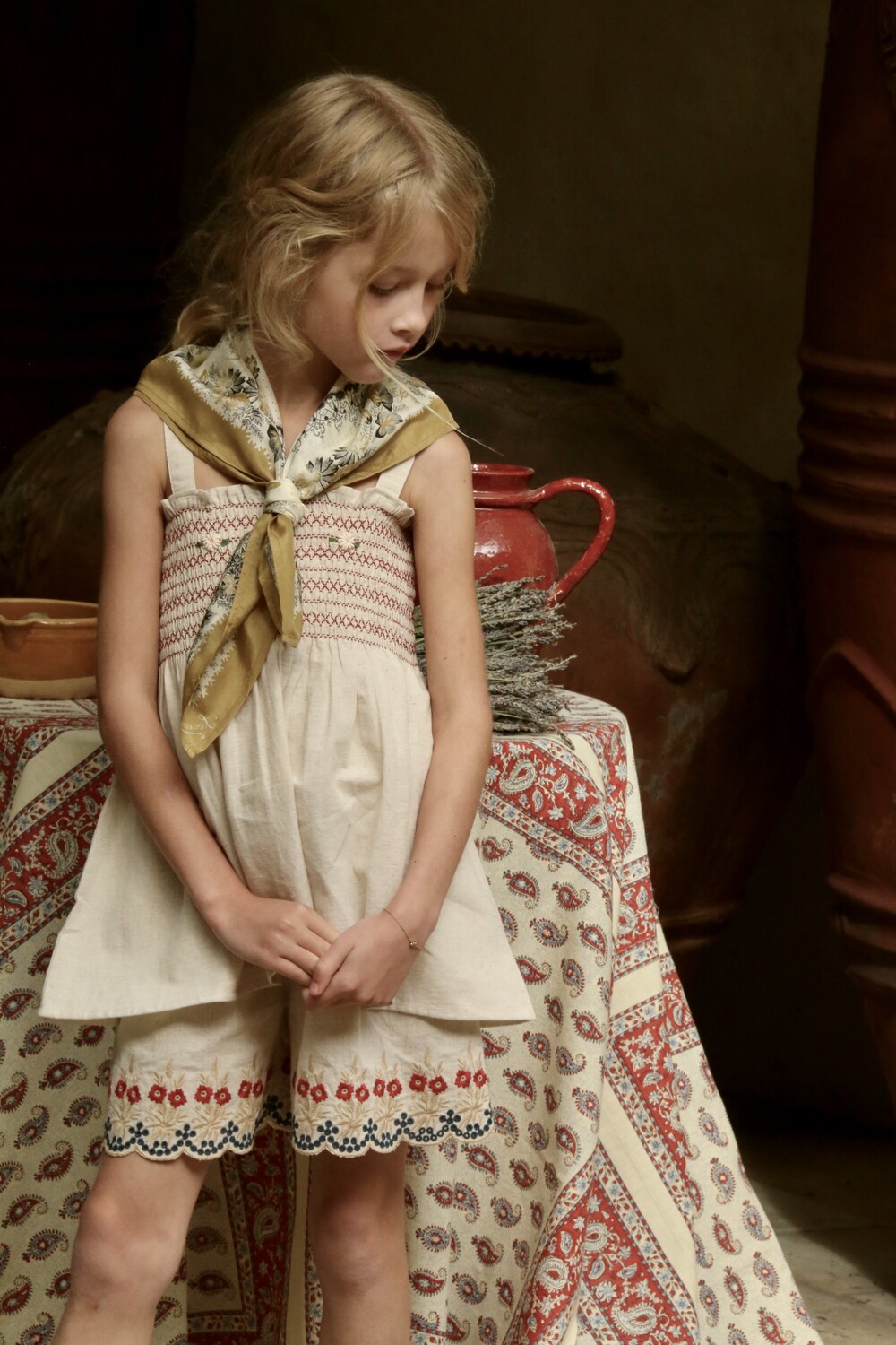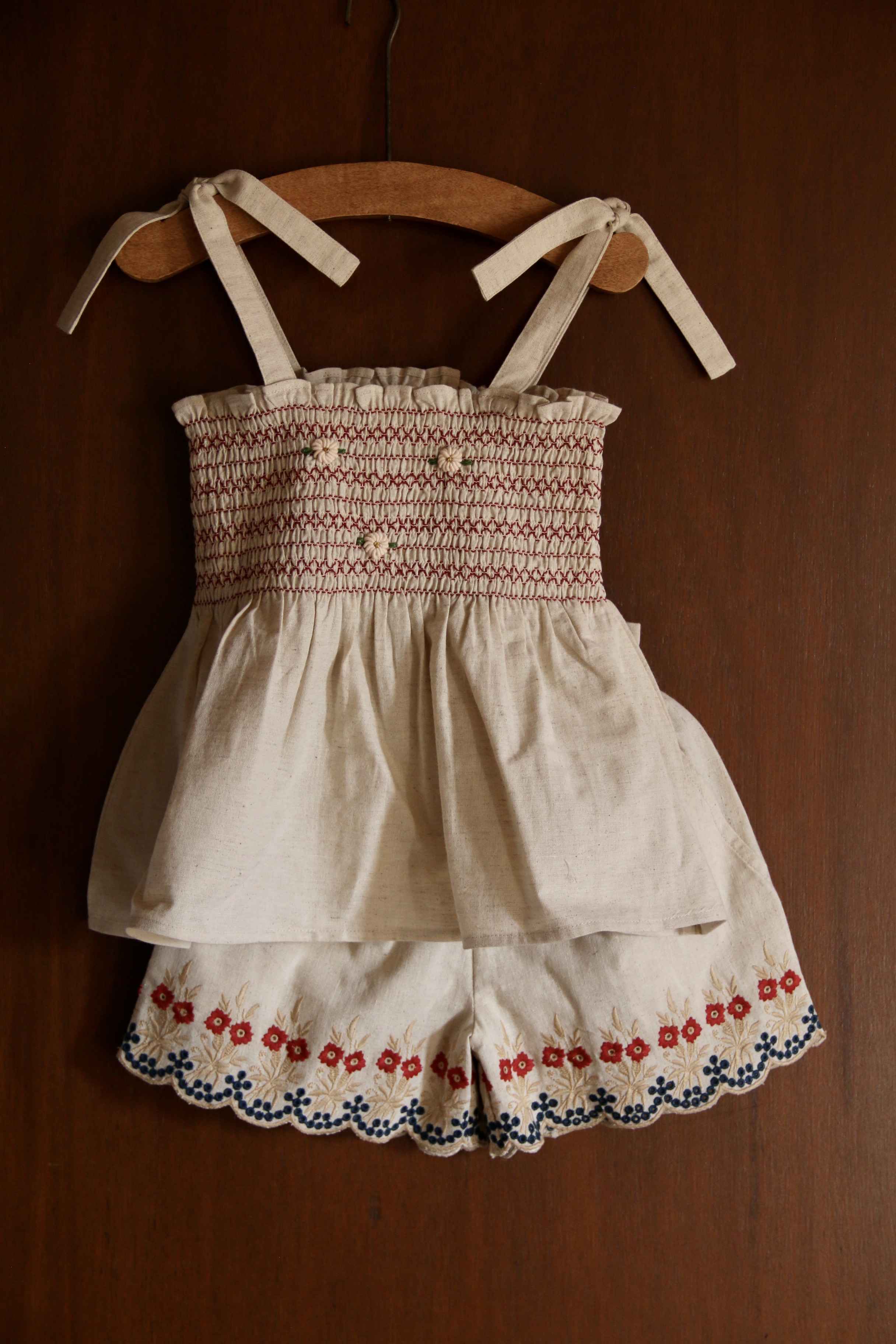 EMBROIDERED Shorts & top set_Natural cotton flex with multi color eyelet emb_Bonjour
