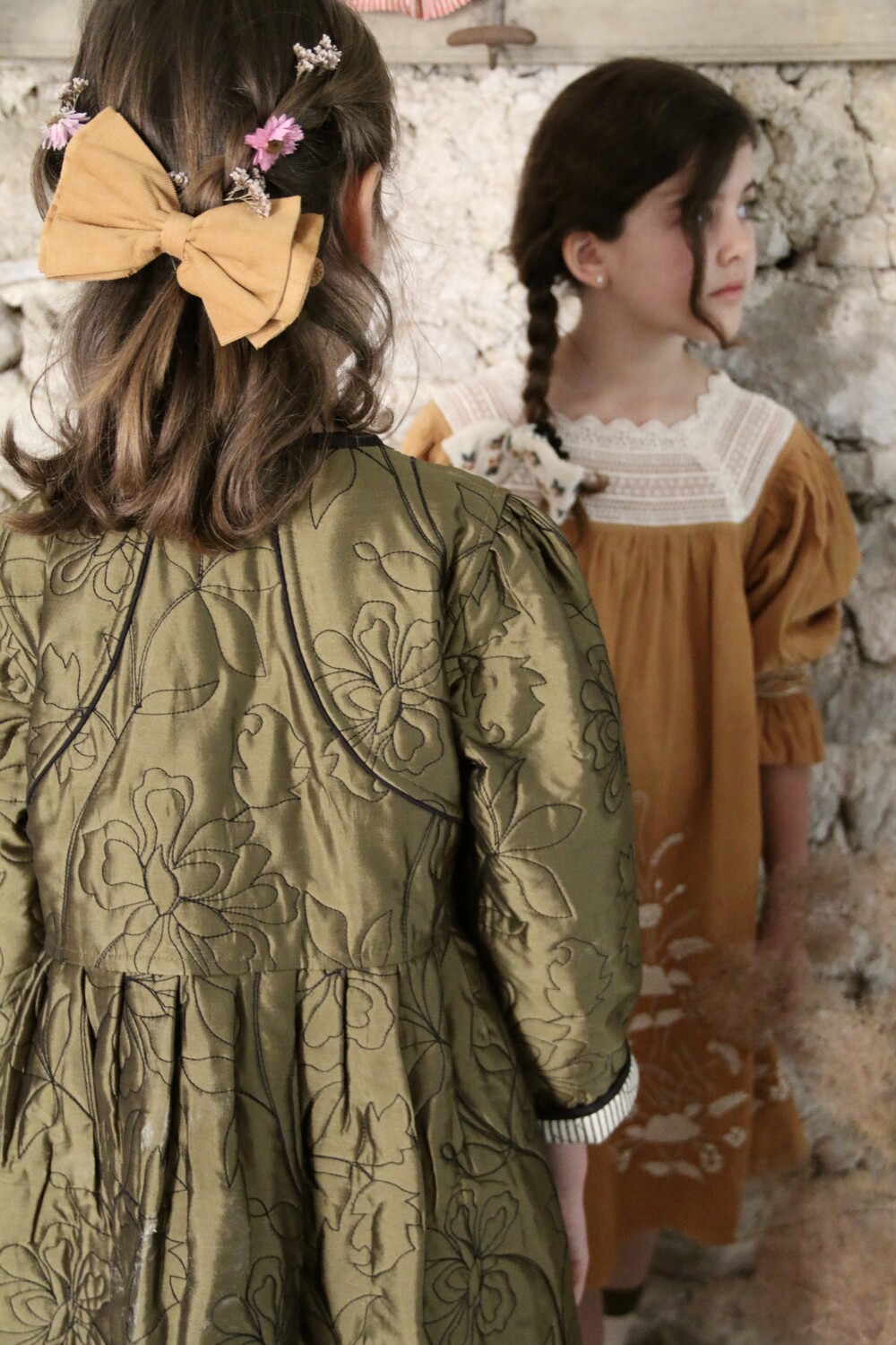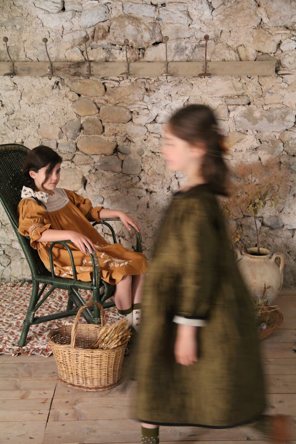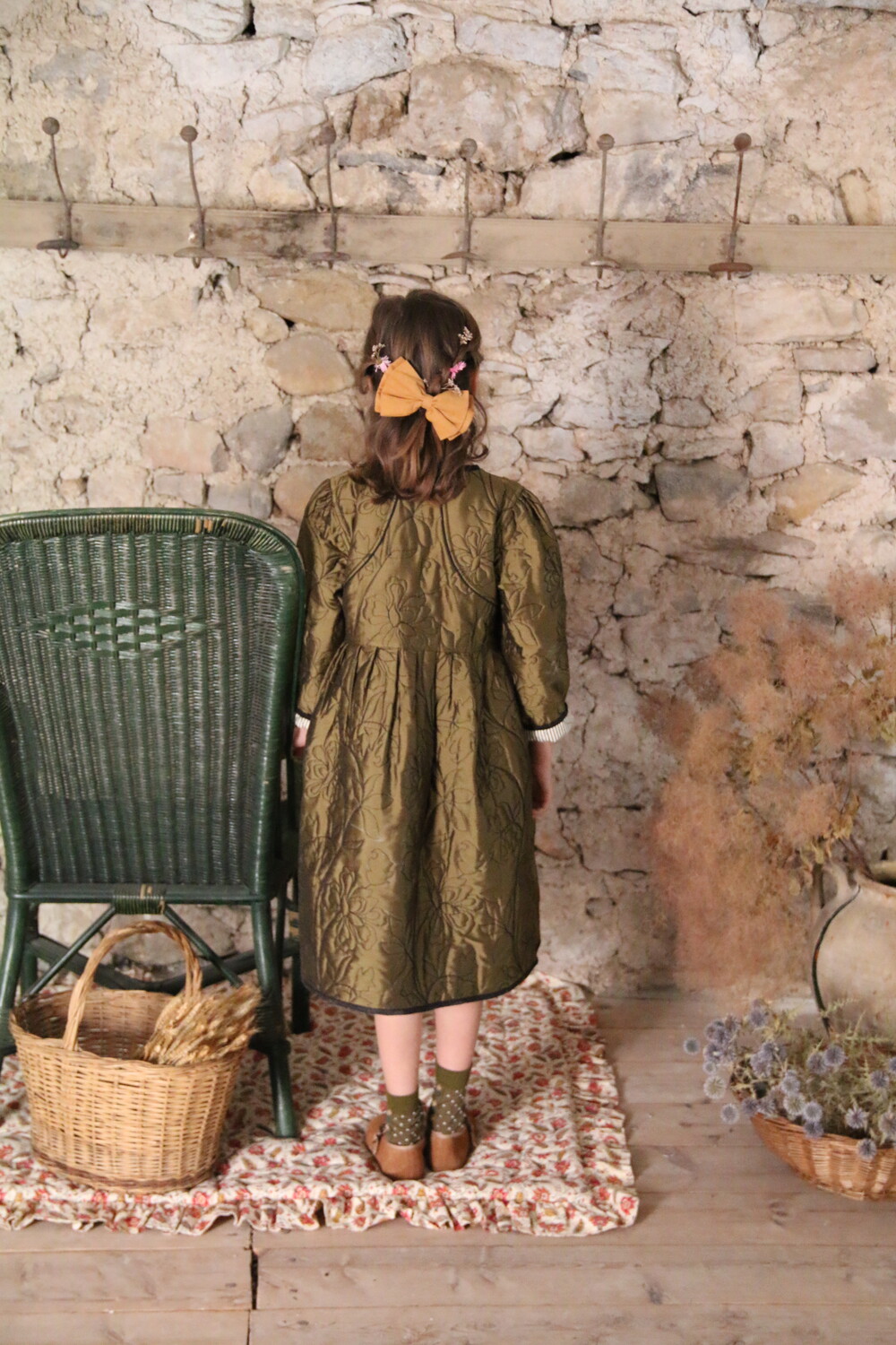 DRESS COAT_kaki taffeta / black organic voile piping_Bonjour