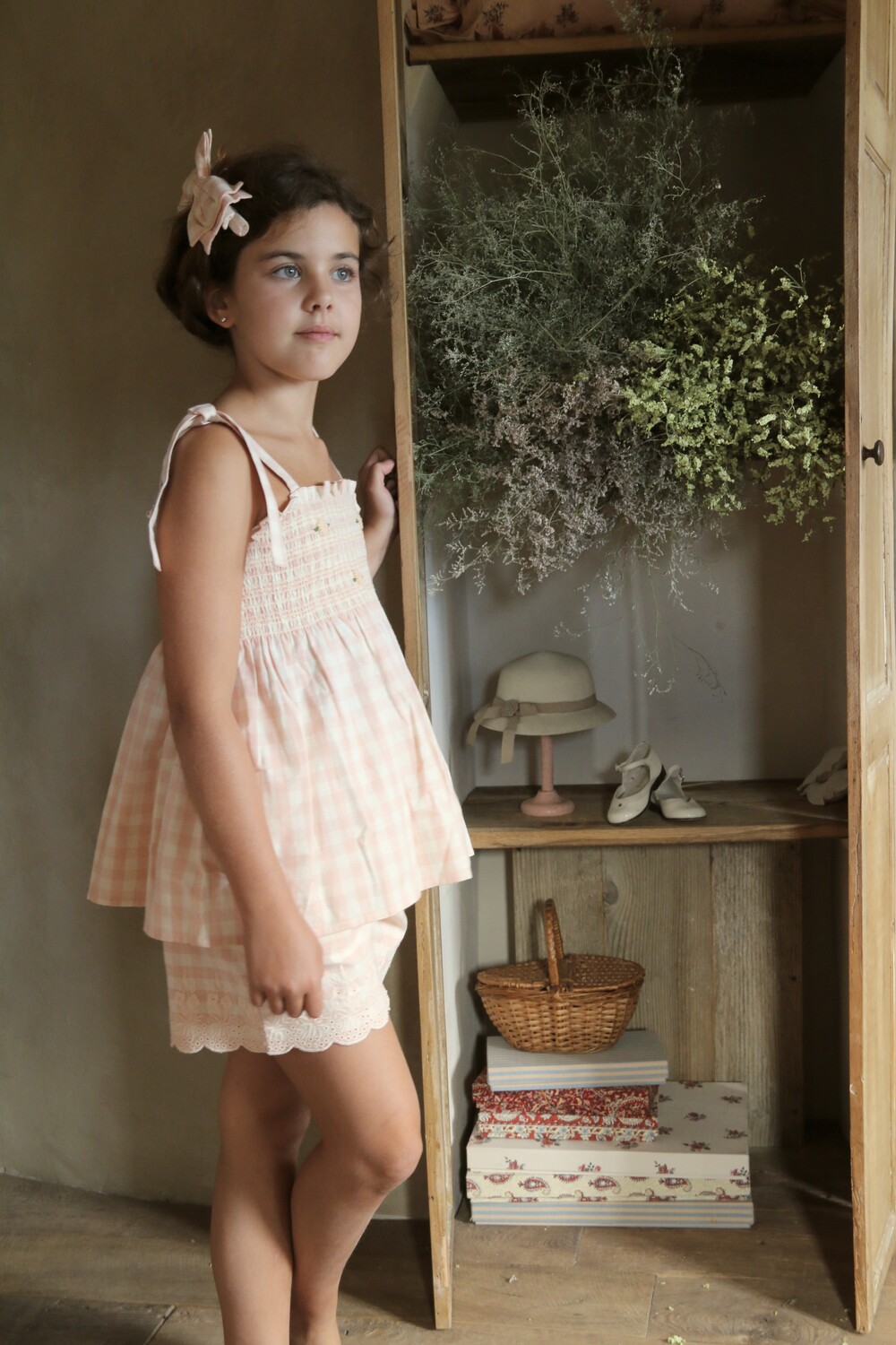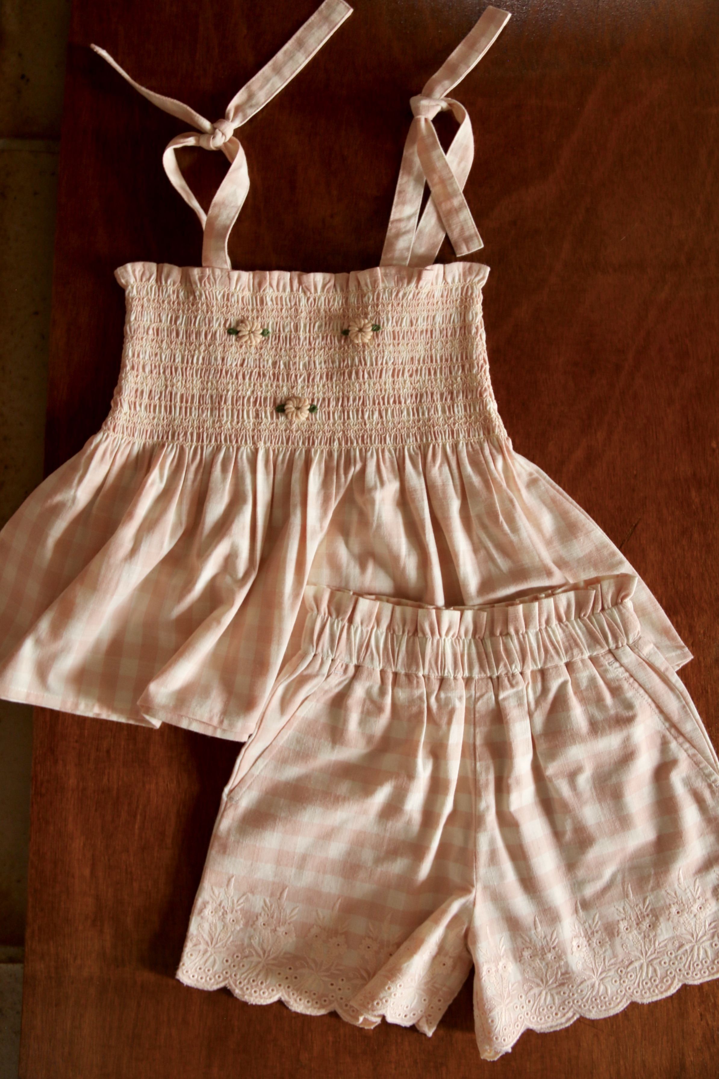 Shorts & top set_Pink Vichy with small design eyelete emb_Bonjour