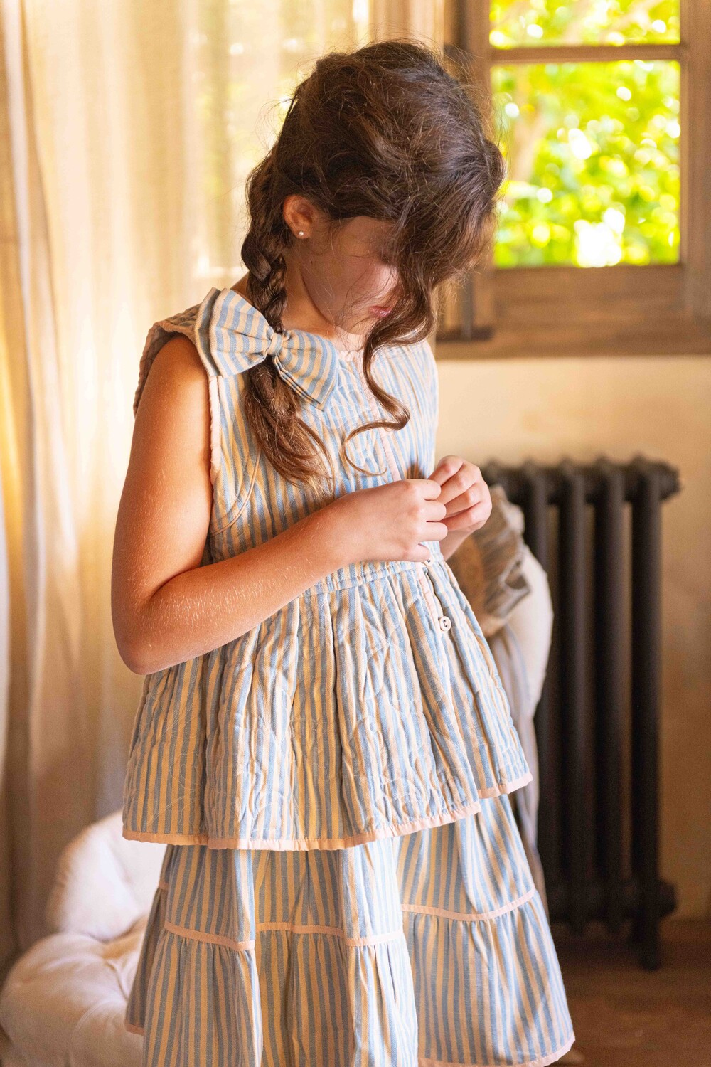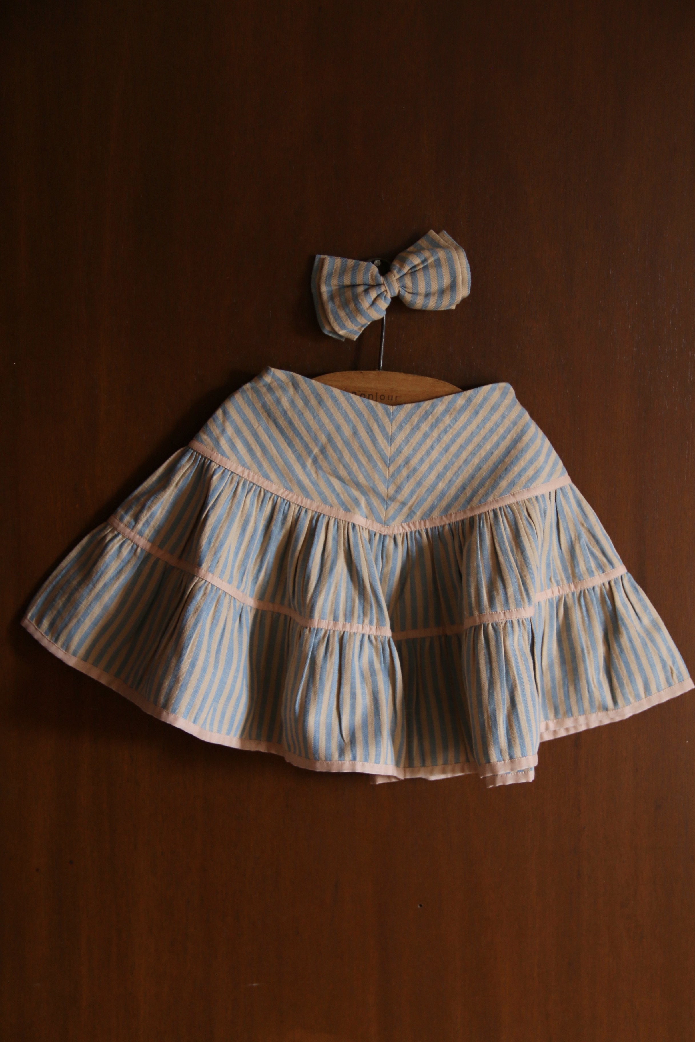 Flounce skirt with hair clip_Blue transat stripe_Bonjour