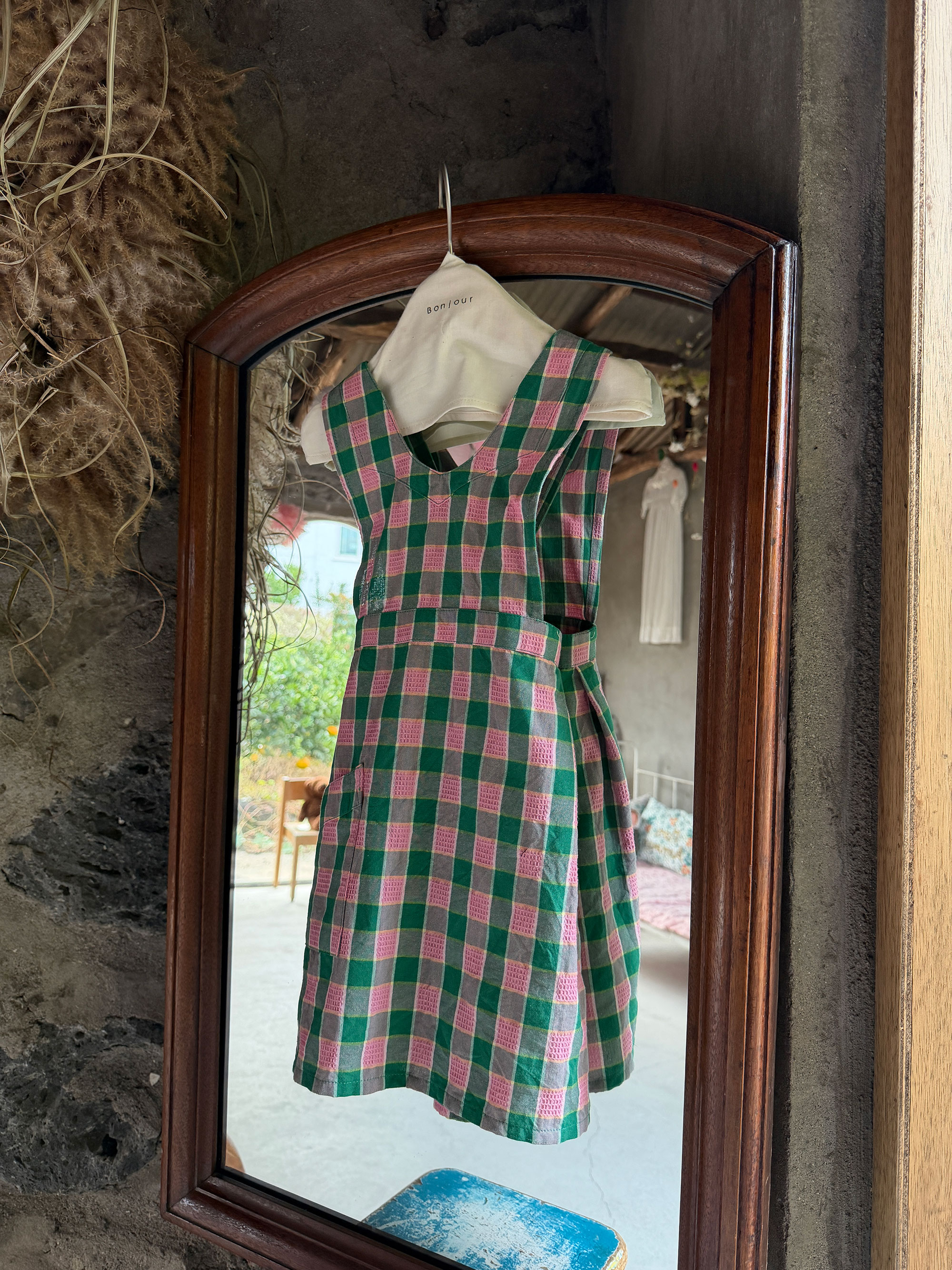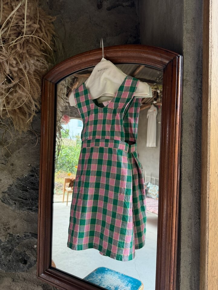 (JEJU)Apron_Pink Green Honeycomb
