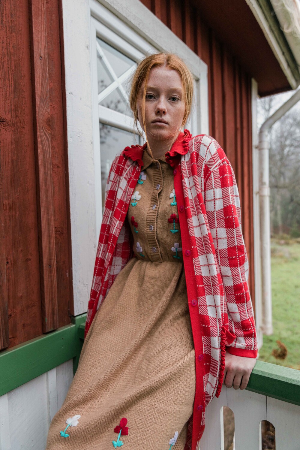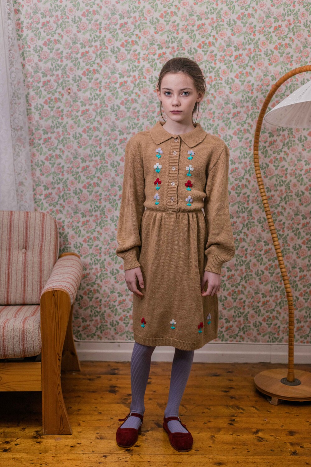 CAMEL DRESS WITH EMBROIDERED FLOWERS AND BUTTONS _CAMEL_FISH & KIDS