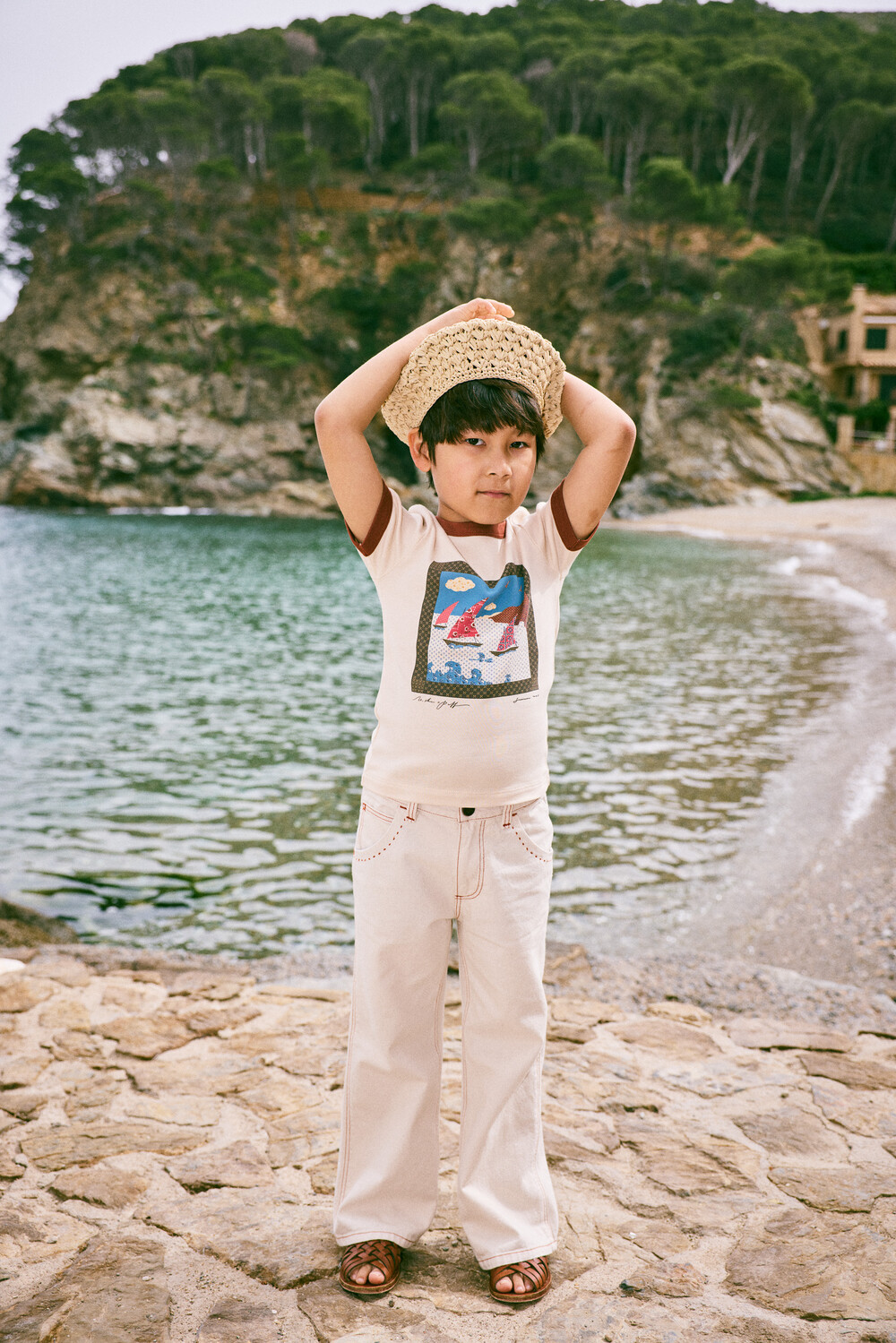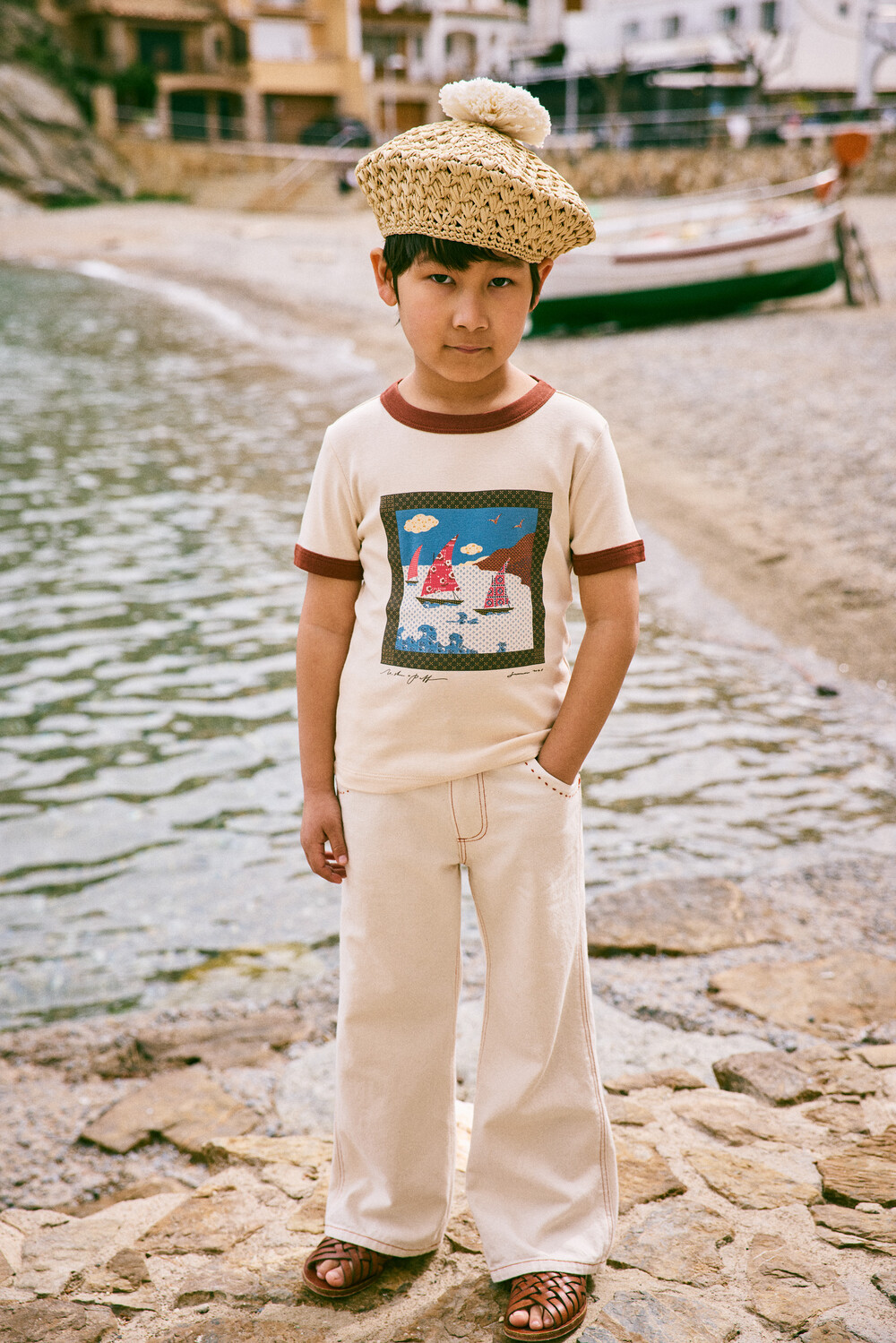 Sailboat Collage Ringer Tee_Bisque_Misha & Puff