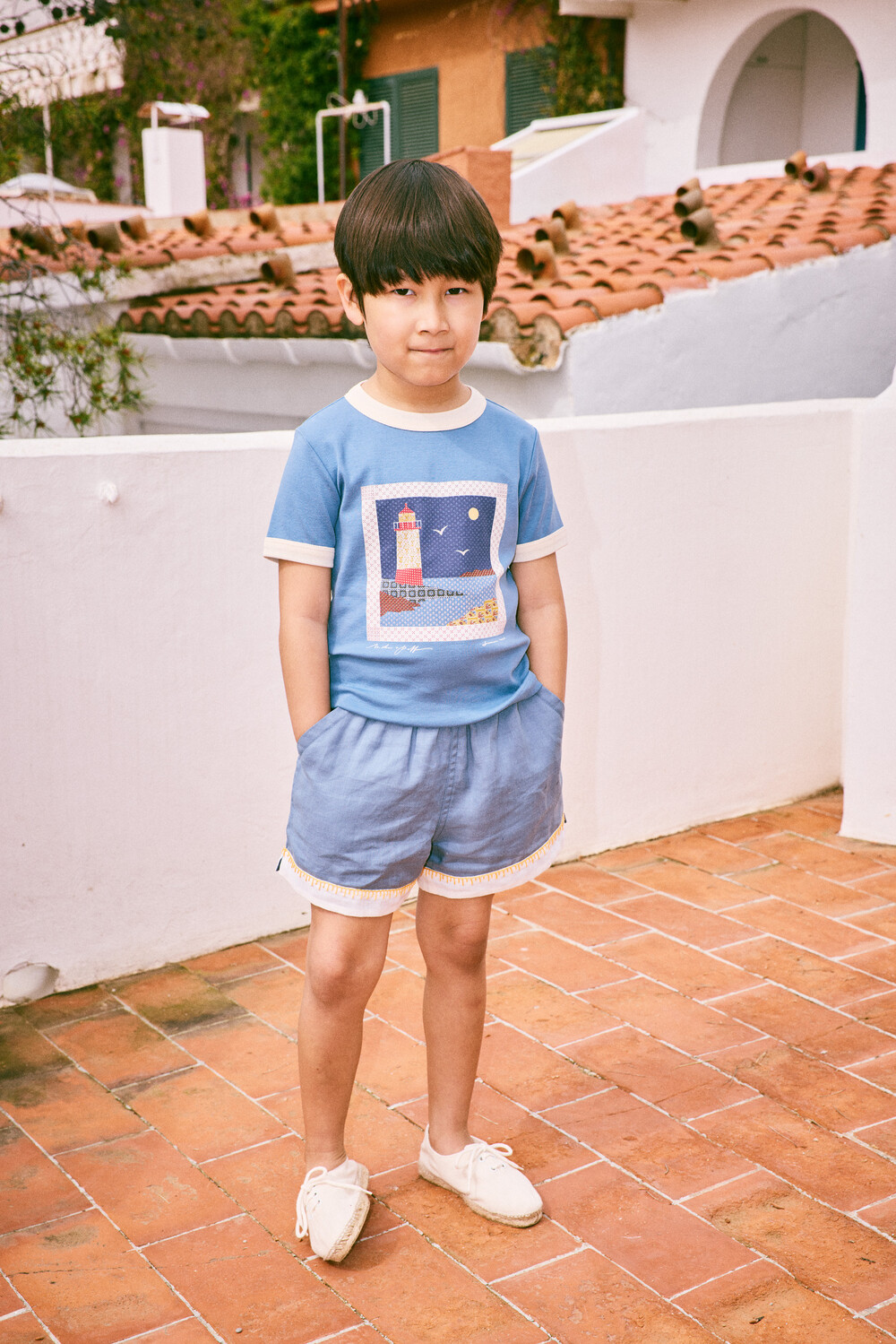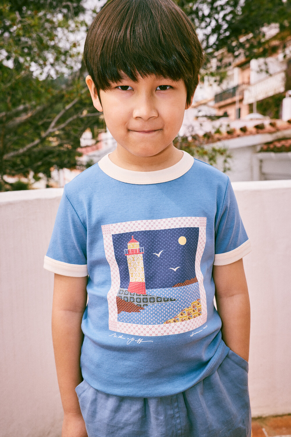 Lighthouse Collage Ringer Tee_Blueslate_Misha & Puff
