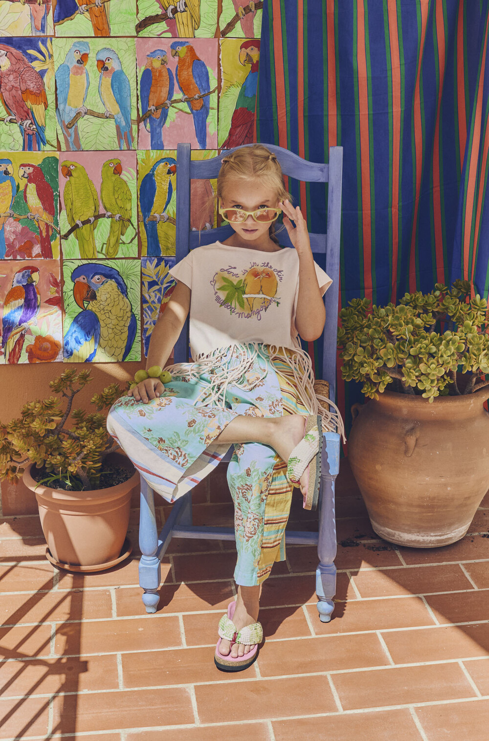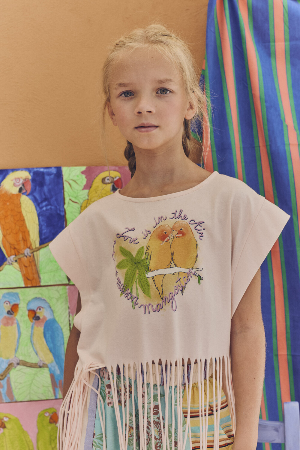 Birds Fringe Top Blush_Maison Mangostan