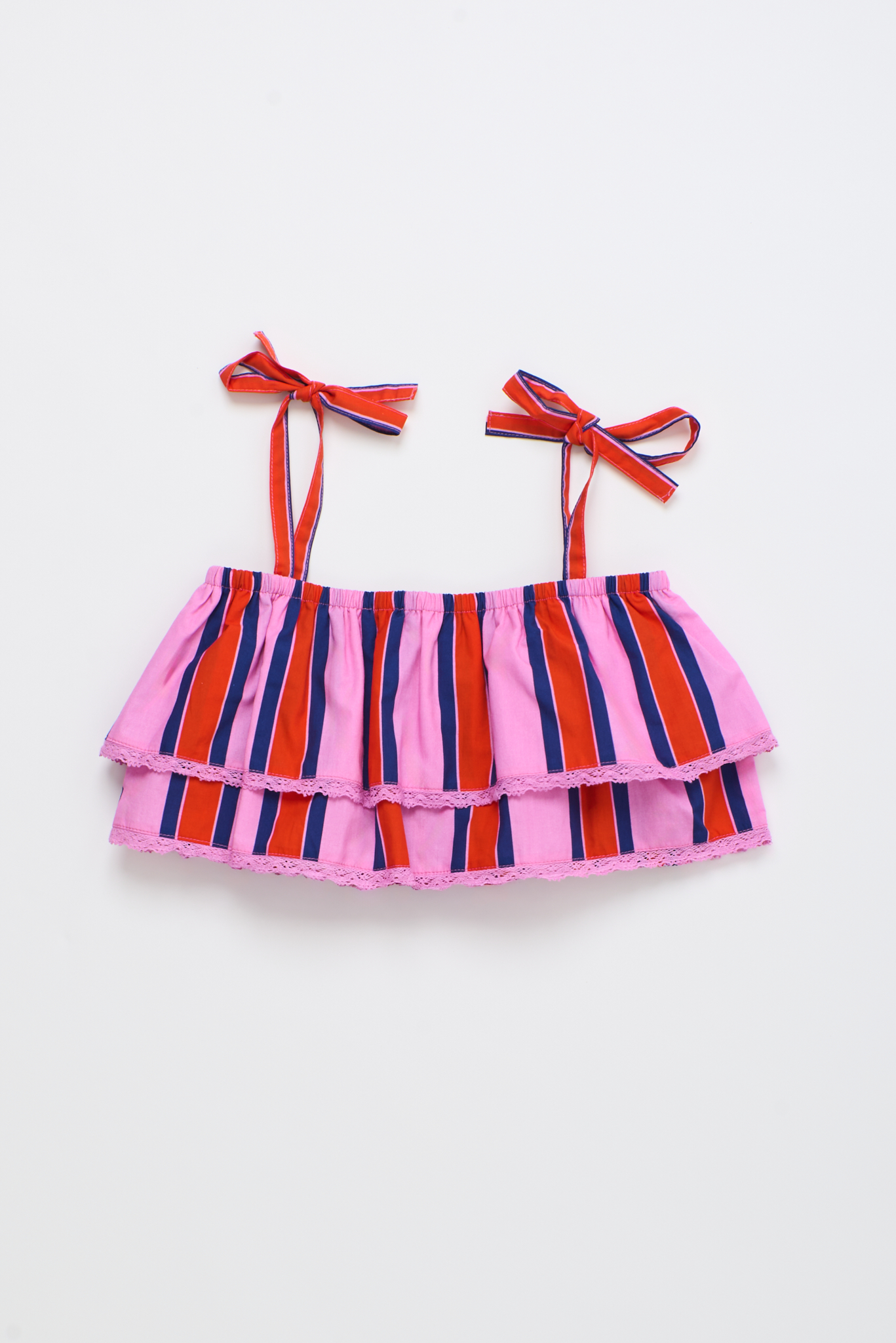 Tropic Ruffles Stripes Top Pink_Maison Mangostan