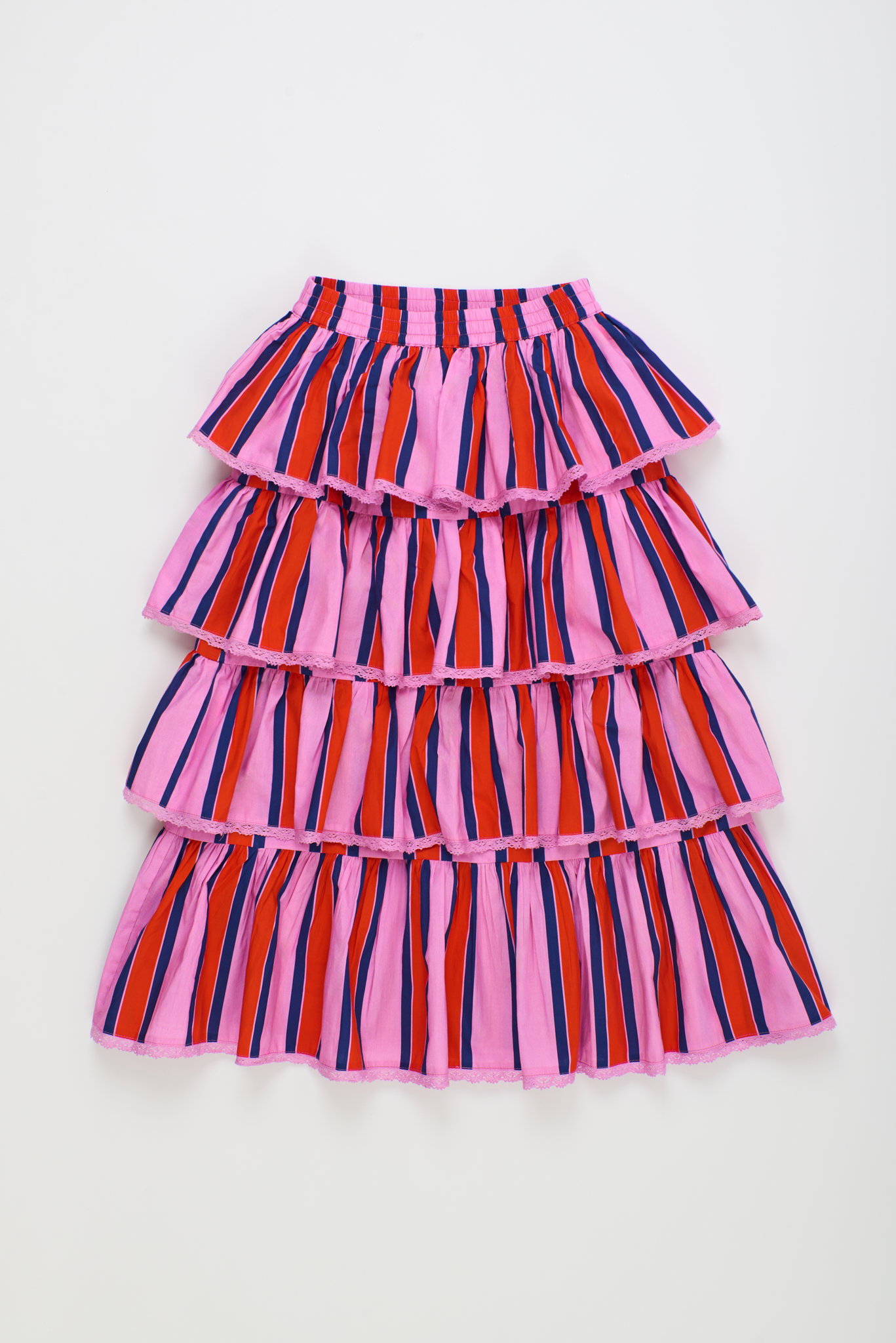 Tropic Ruffles Stripes Skirt Pink_Maison Mangostan
